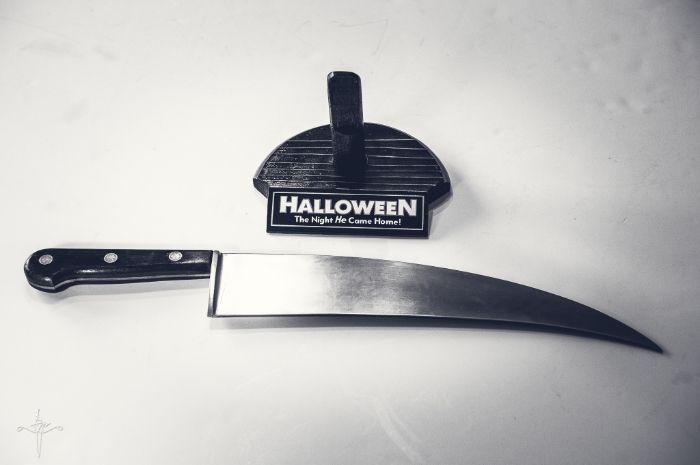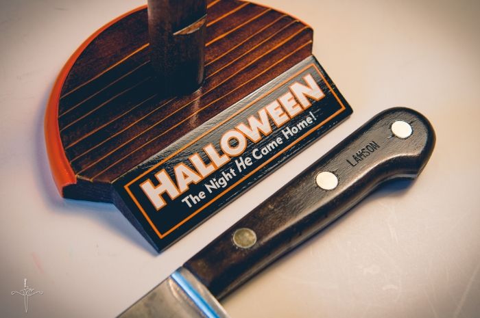 Here’s a HalloweeN poster knife for John Anderson. It was one that I had for my personal collection but I knew how much John wanted one… so here it is. This one is 18" long and weathered quite a bit with a nice vintage feel about it. I think this is my favorite style replica of all the ones I make!