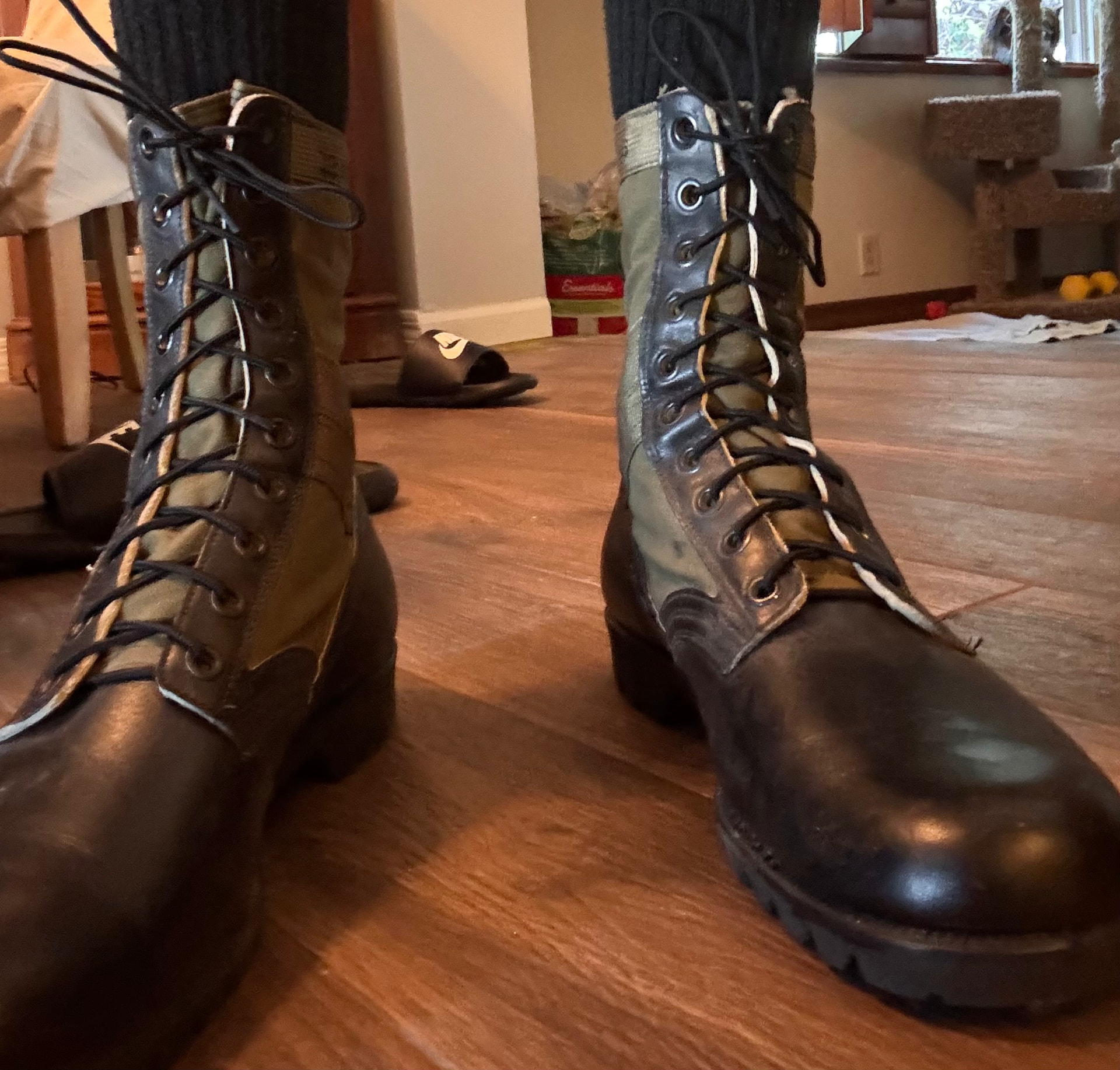 My boots came in! I’m actually super stoked on how well these fit, I wear a size 12 in shoes and opted for the 12 Narrow. They have multiple warnings about the shoes being extremely narrow, but they fit just great! I’ve been wearing them for about thirty minutes now and there have been no sensations of uncomfort.