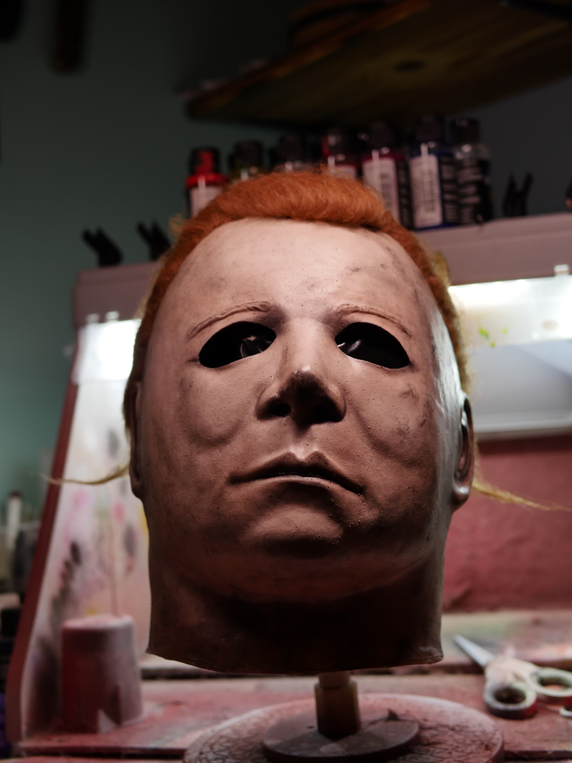 TO ME, the most accurate representation of the hero would be masks that are made with direct lineage to the Don Post Kirk. We all know there are a hand full of these masks in circulation, including my MIKE DROP mask. (btw-not recast from any mask in production) I will also have a classic look and H2 versions avail. The original pull will be stretched to accurately match Warlocks head shape or Castle’s (as with MIKE DROP) and molded in plastic , to produce what i think, is the closest full detail replica to the original Michael Myers mask available.