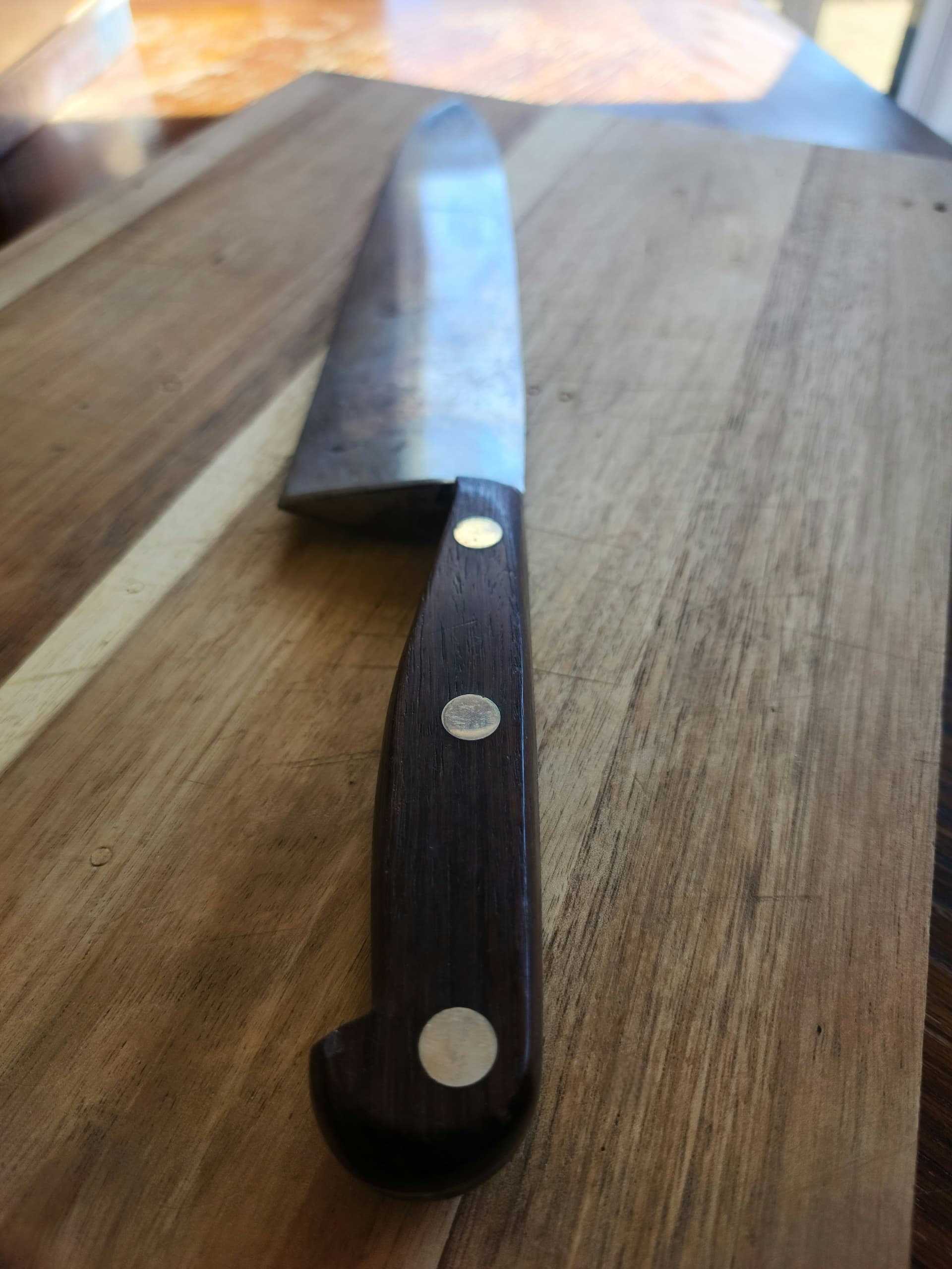 For the curious: my grail knife features an angle drop that is off center from the bolster. It can be seen on the spine. Additionally, my knife features half moons on the bolster that were shaped too aggressively. Too much material was removed during the shaping process, a common discrepancy. Itās a bummer my knife isnāt perfect, but I refrain from complaining. I am very fortunate to own this knife, I know that. Iām just also a bit of a whackadoo when it comes to obsessing over details.