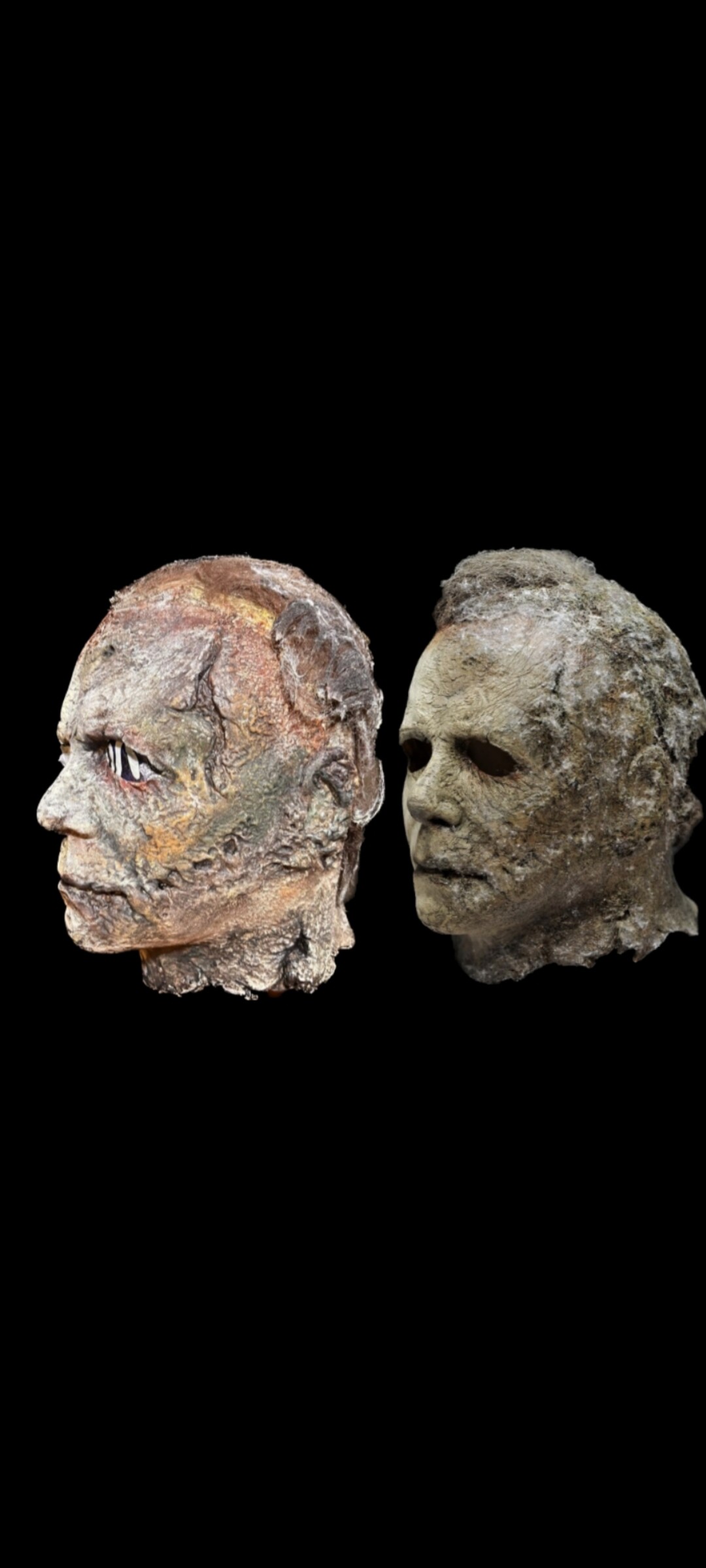 The green on the burnt side looks really nasty! Definitely gives off the sewer vibes. For mine on the damaged side specifically, I used a mix of yellow ochre and raw umber, dry brushed onto a brown base to make it look like the colour of raw latex. Then I went over and added some black and green details (and some dried blood of course!).