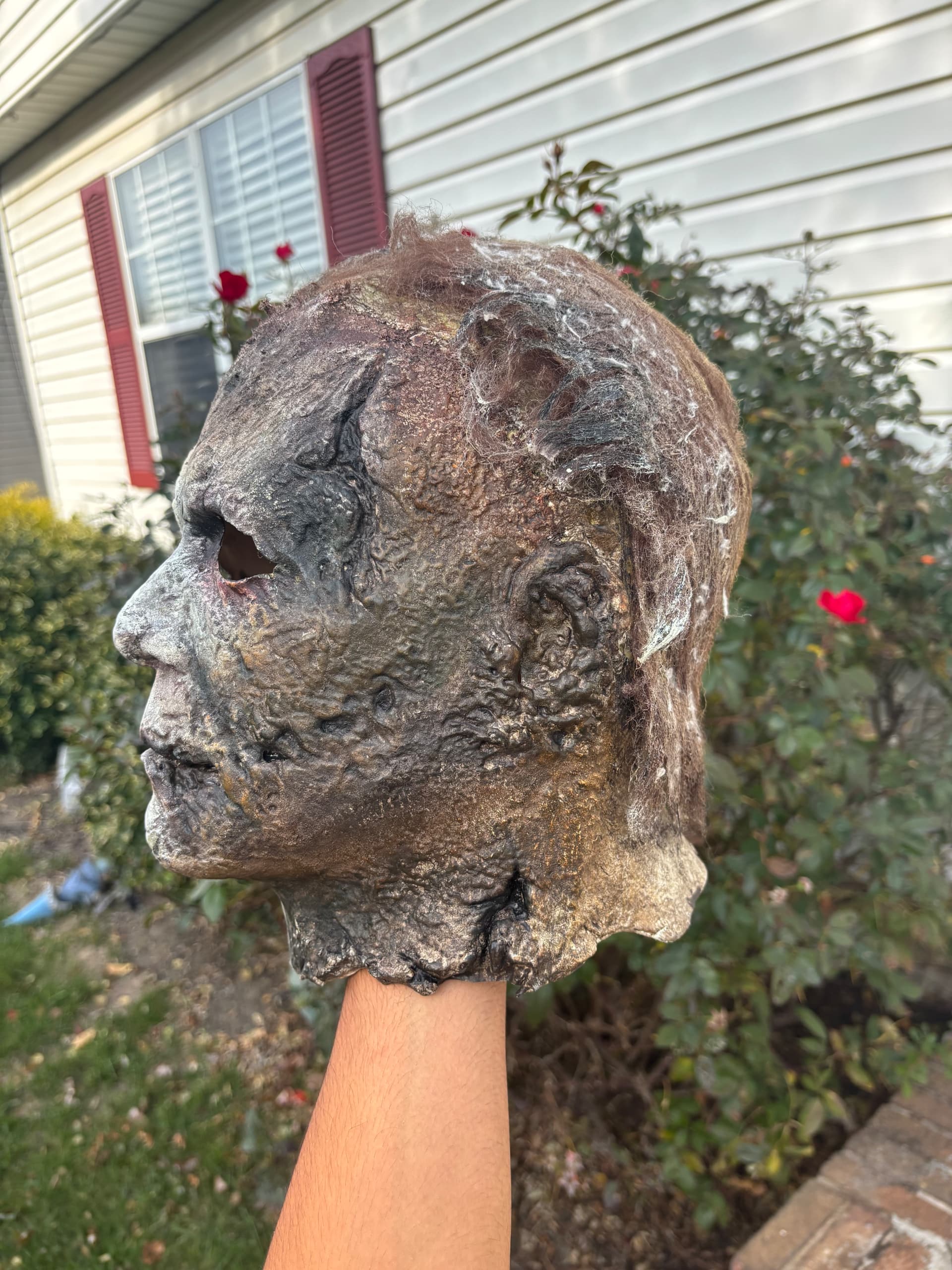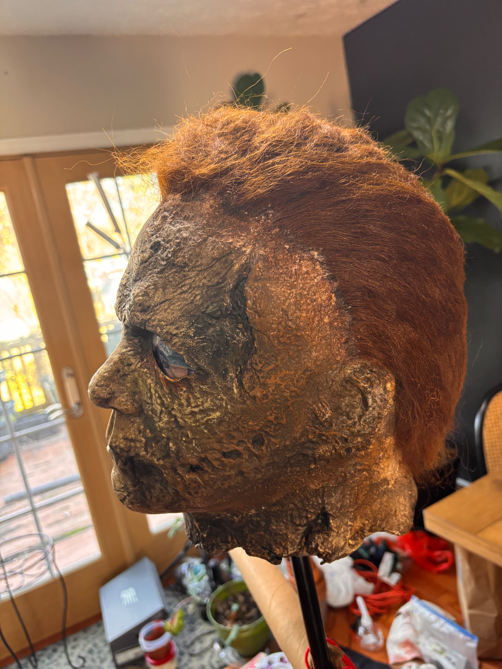 Coming back with a progress update since it’s been a minute! The project was starting to frustrate me so i took some time to relax and come back to it later. Overall it’s not perfect but im happy with it for my first time rehauling. Took forever to put the hair on but im happy with the shape of it right now. Not too long which I like on the ends mask. Just gotta figure of the mold the hair dust and burns and i’ll be set!