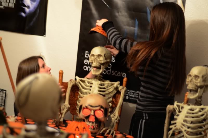 Katie and I both trying to rig up the hock to stay on the skeleton to take pics.