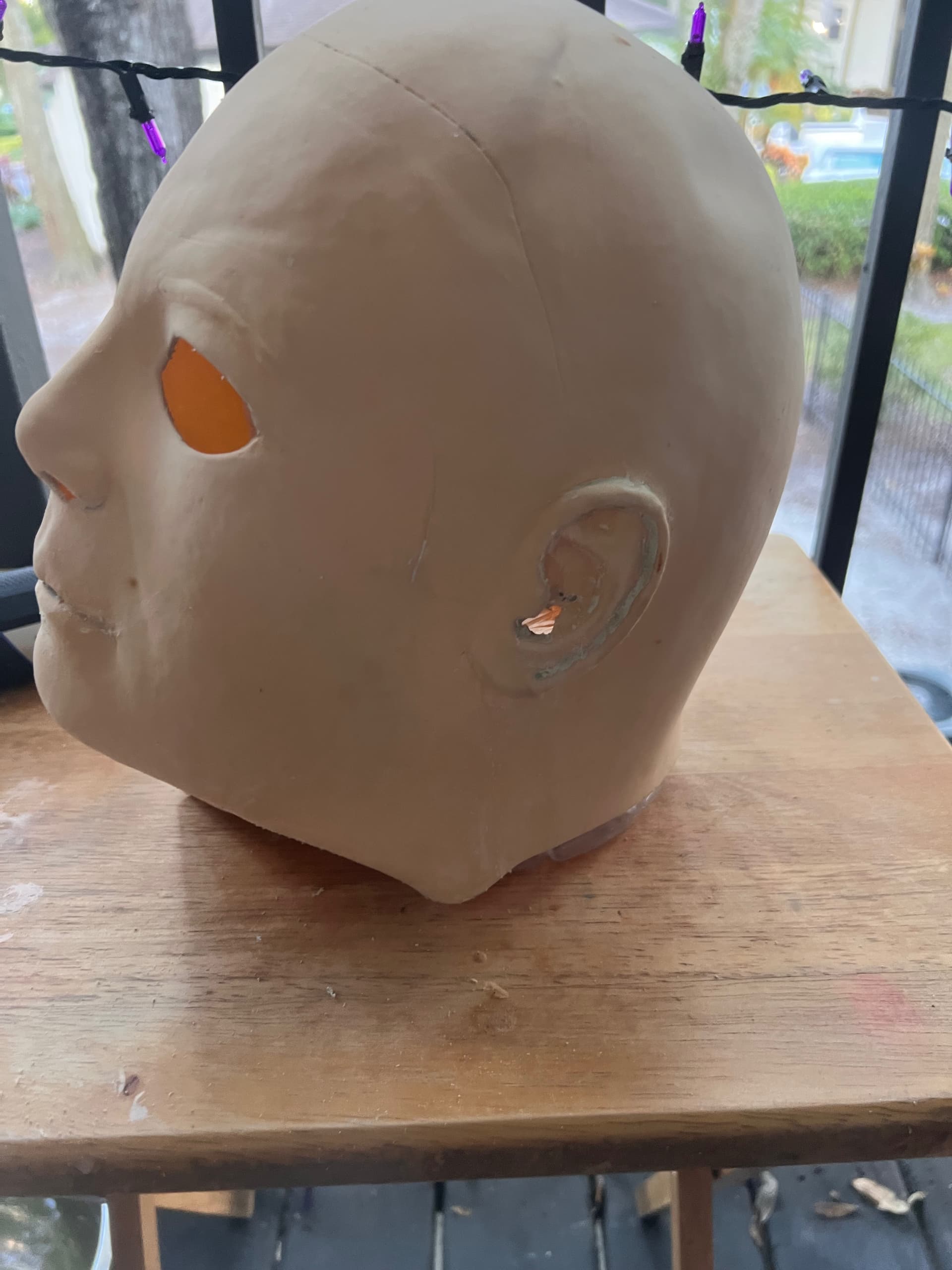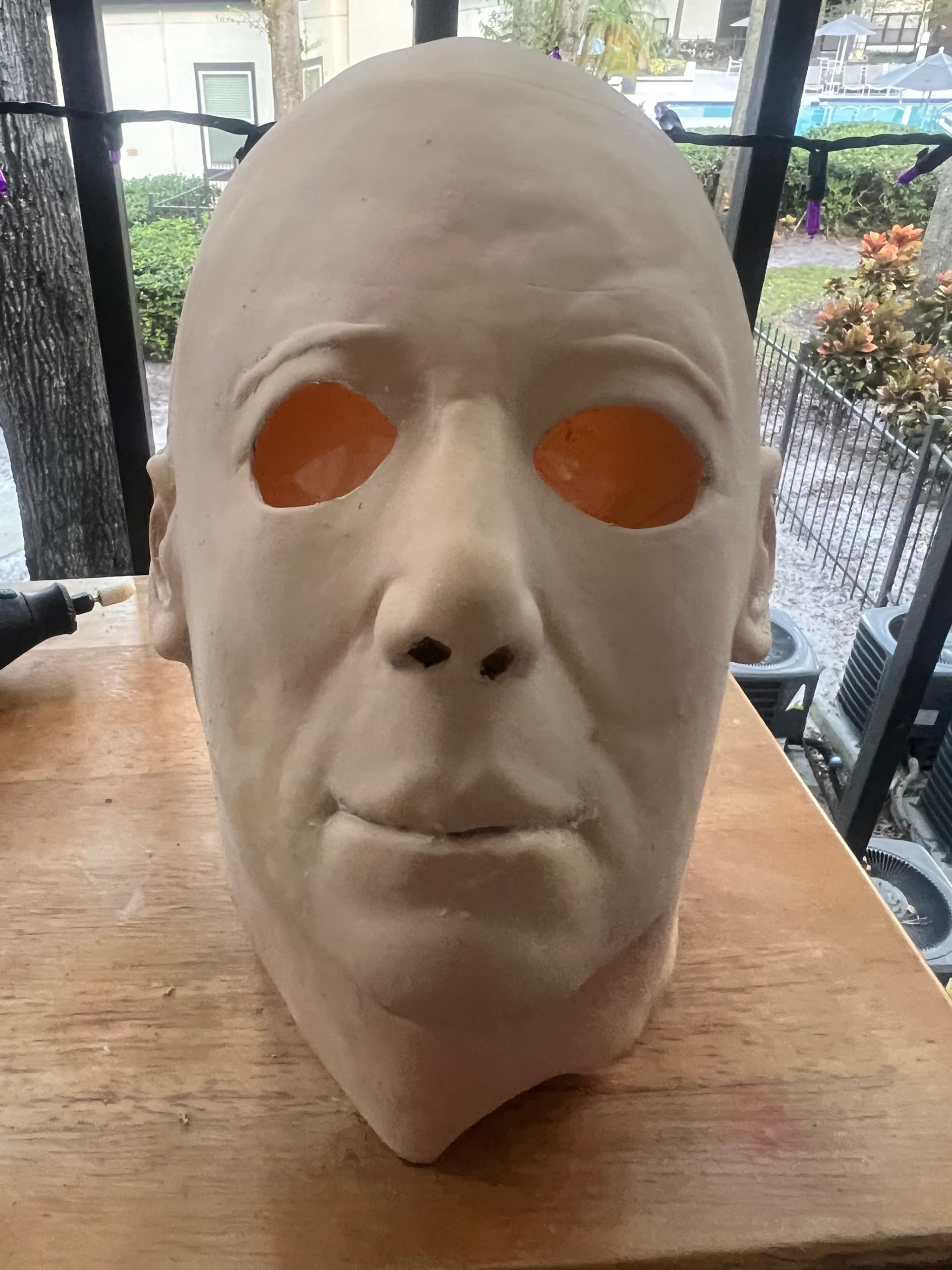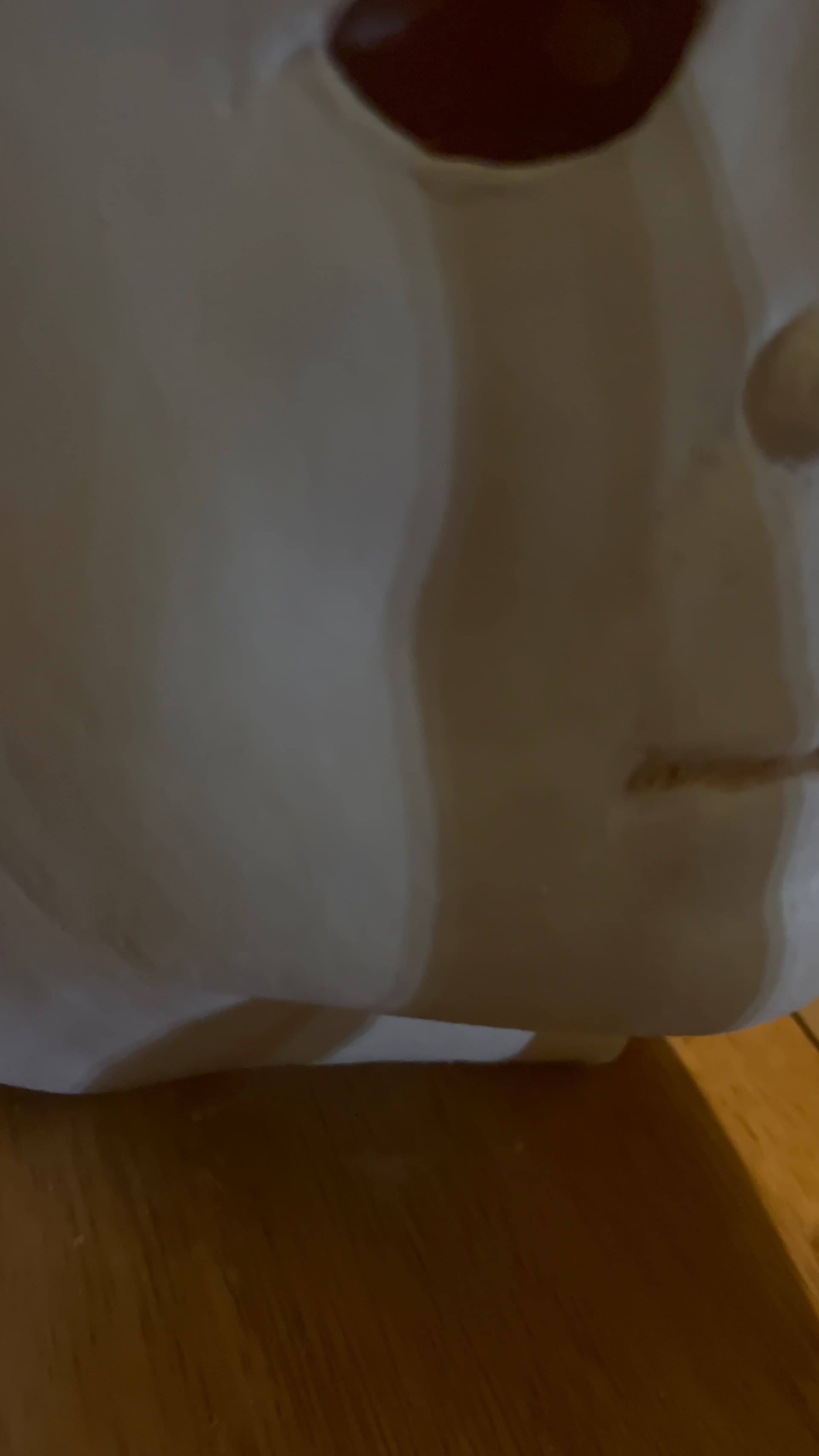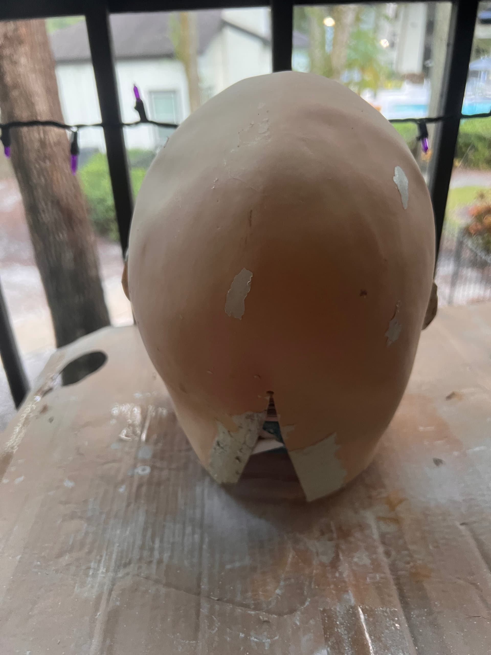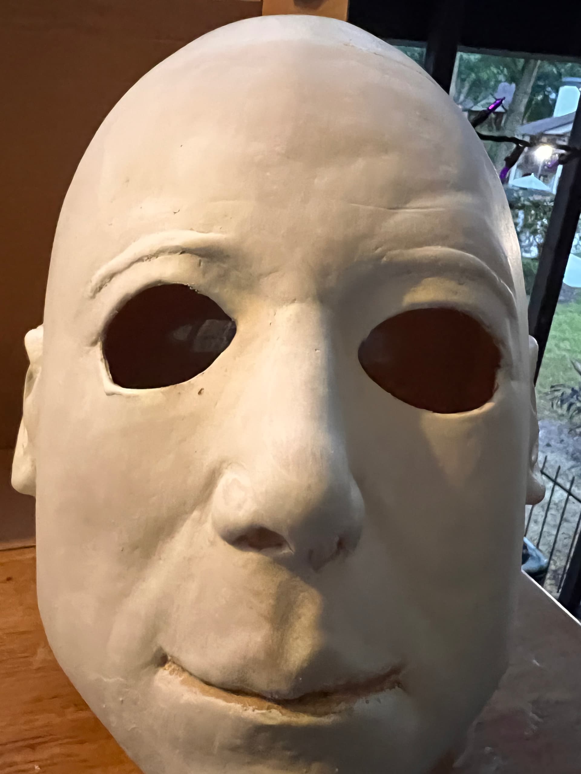 Day 2 of paint, 11/7/25. 1 coat. Entire mask is “chalky/ashy” but the paint is smooth and even. The top of the head cracks slightly when mask is manipulated.