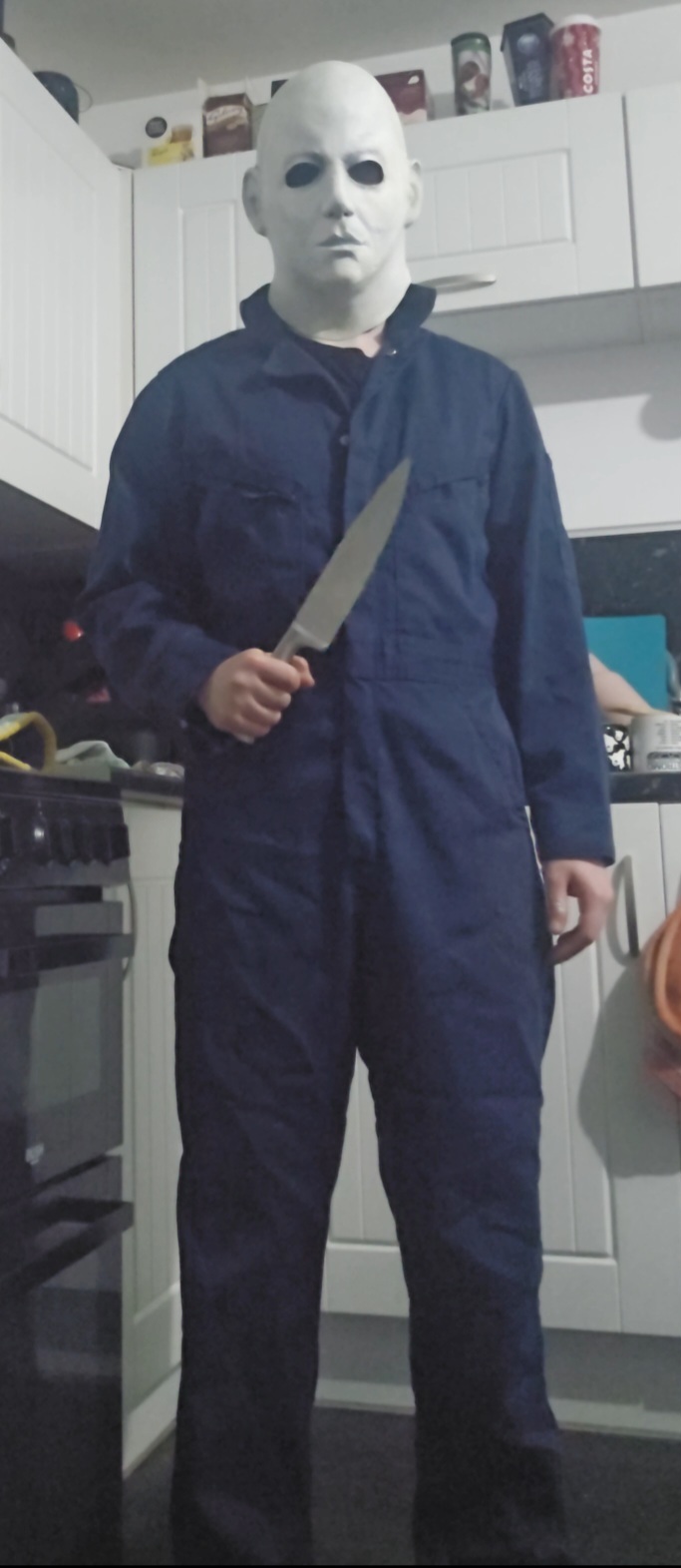 Unfinished H6 costume, coveralls need to be faded significantly and masks needs haired, however I’m getting serious Nick Castle vibes from this shot