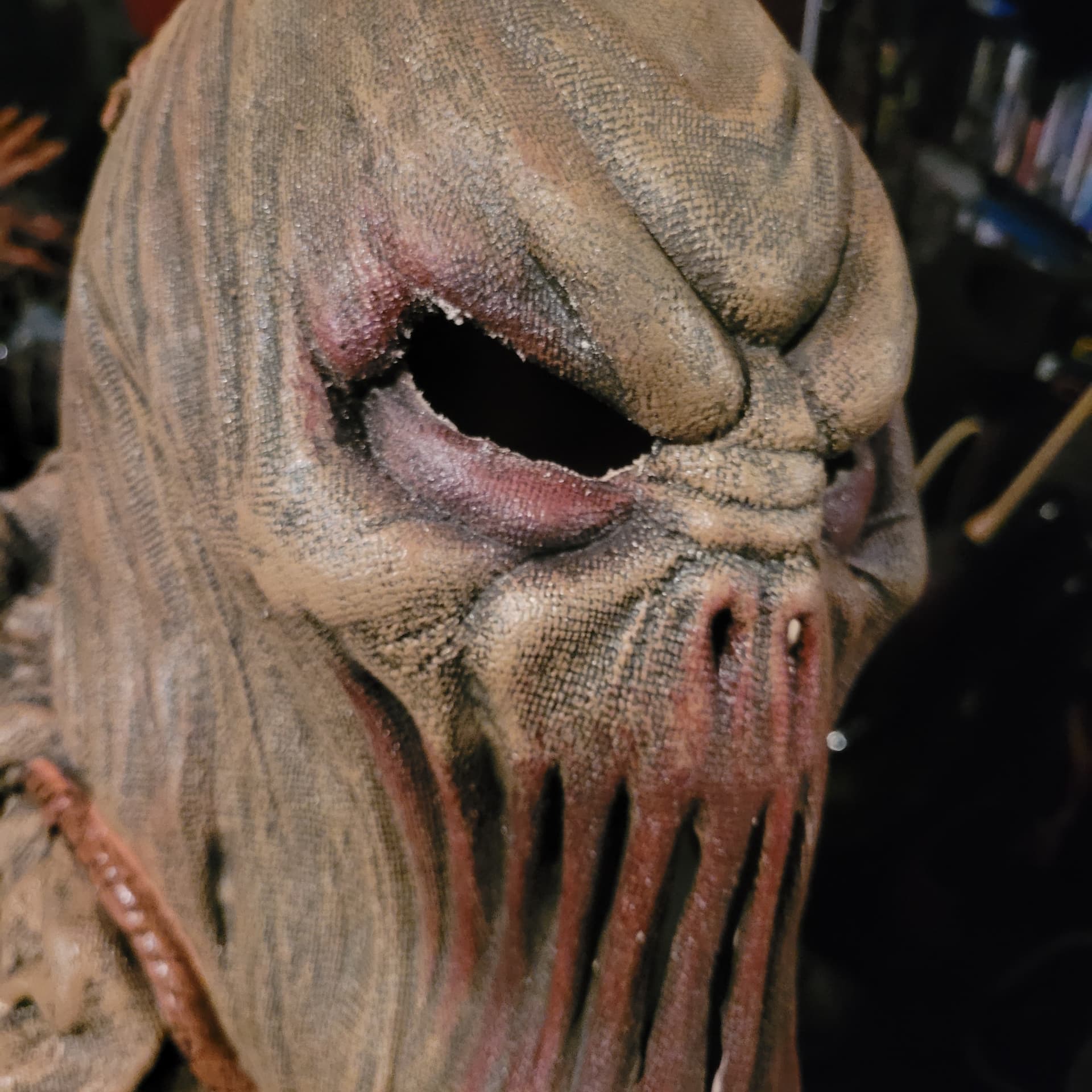 Dremeled the eyes on my scarecrow executioner mask , they were pretty rough. Bottom 2 pics are b4 dremeling pics.
