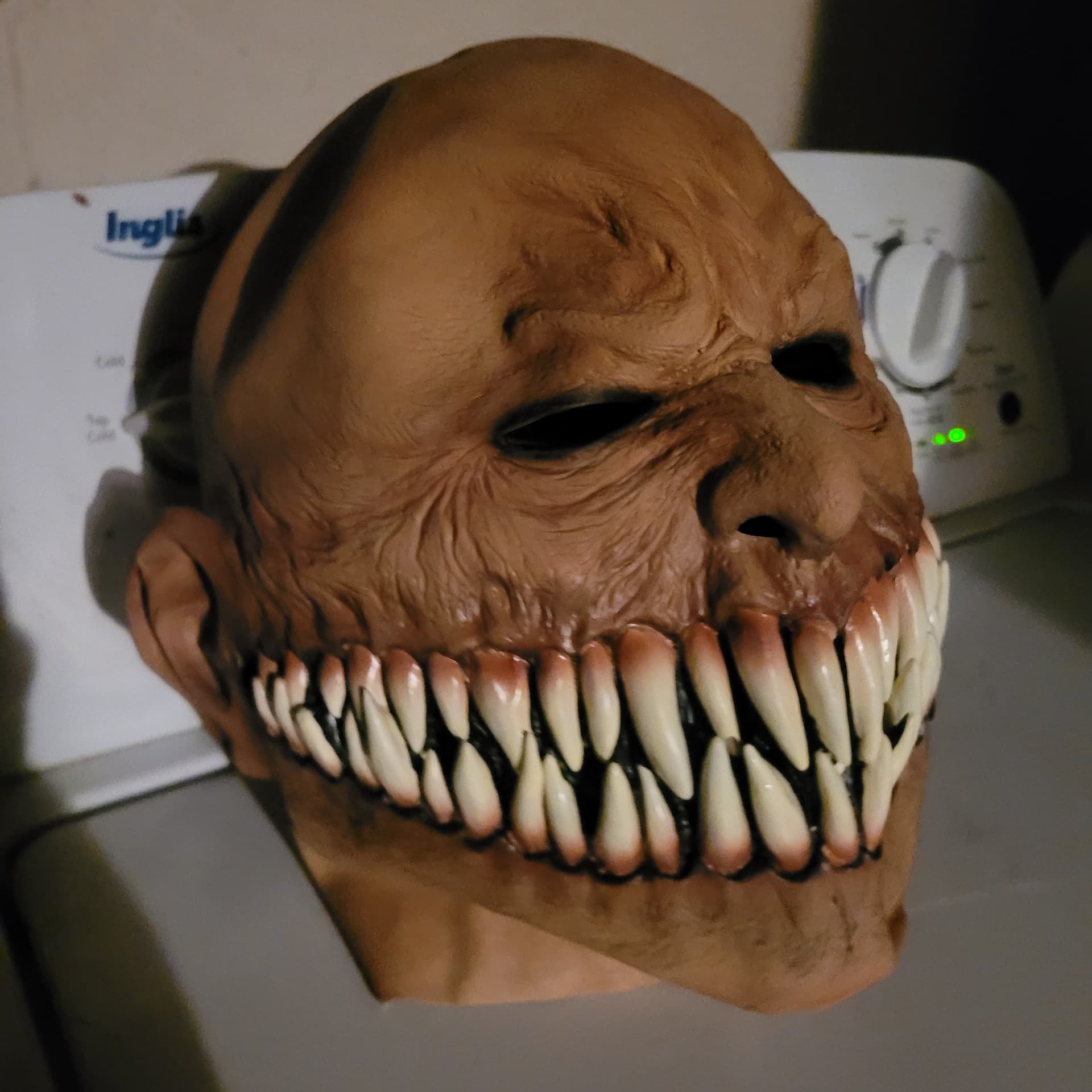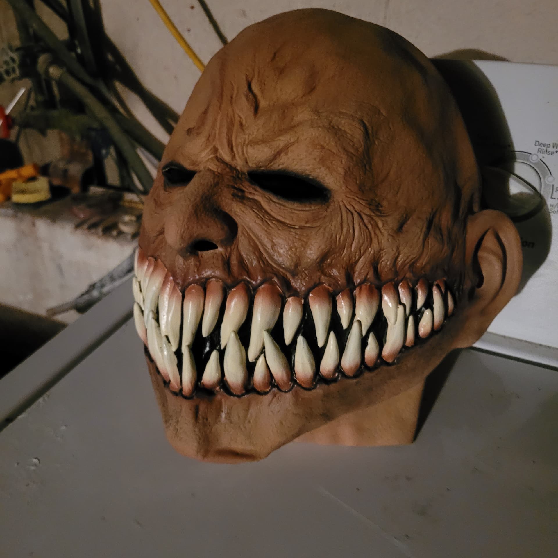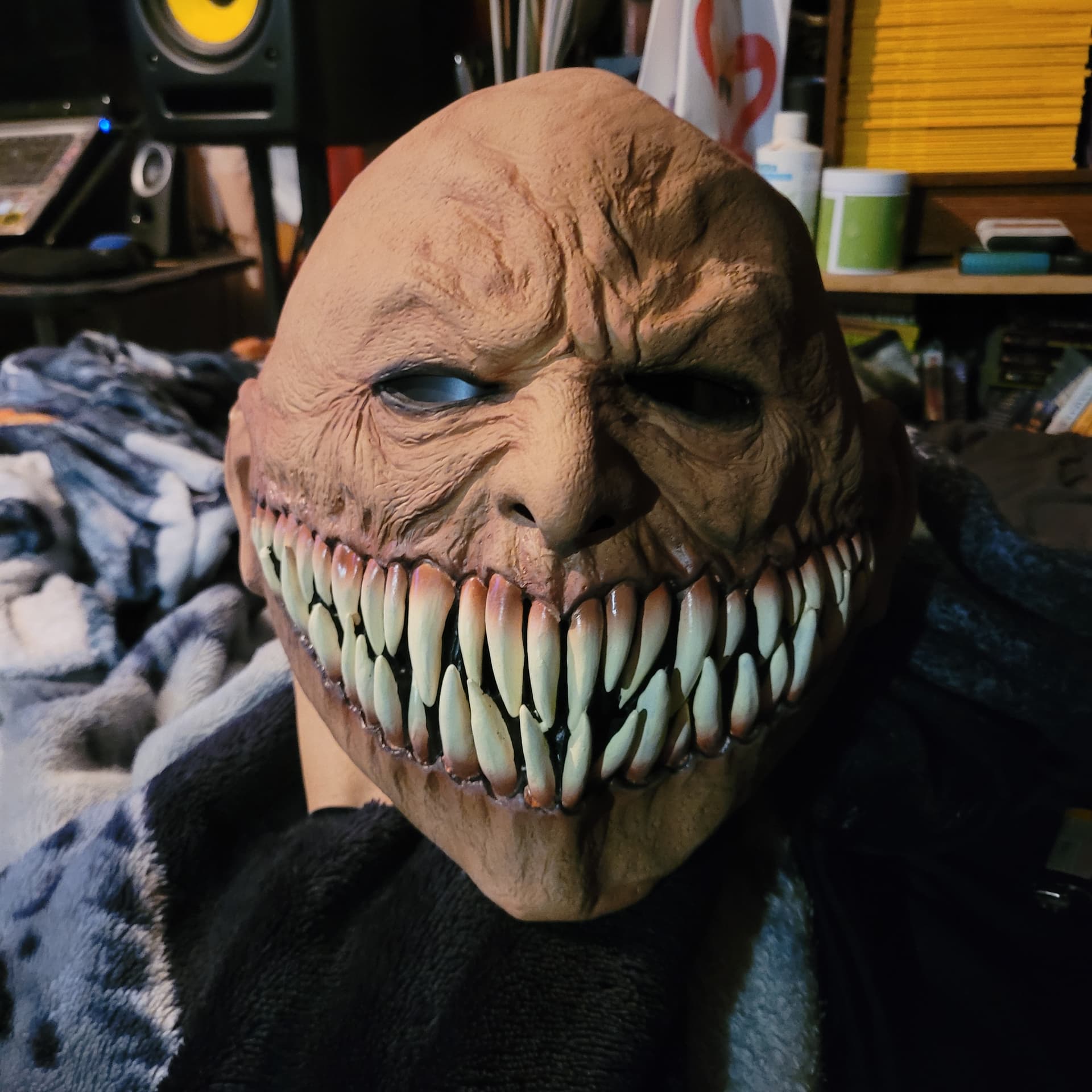 New mask came in , ($40) dont tell the missus! Reminded me alot of the first mask I ever bought when i was a kid, that was borrowed and lost by a ‘friend’ some years ago; not the same as my first mask as it was more warlock like but very similiar facial expression and teeth so I had to pull the trigger. New latex smell!!! Lol shits like gasoline to me . Loving it , especially for nostalgia and its a good substitute for my lost gem. I’ll have to see if I can find the old one, not sure who even made it , got it from a small independent shop that was awesome that sadly closed down.