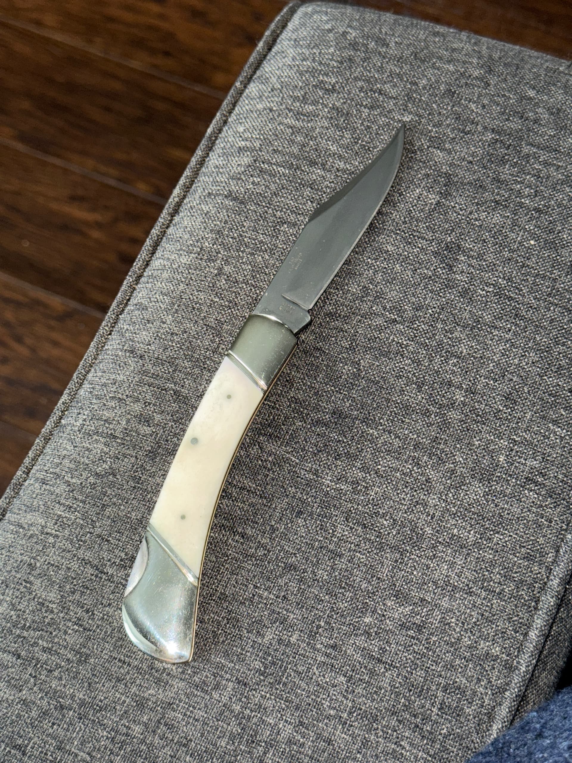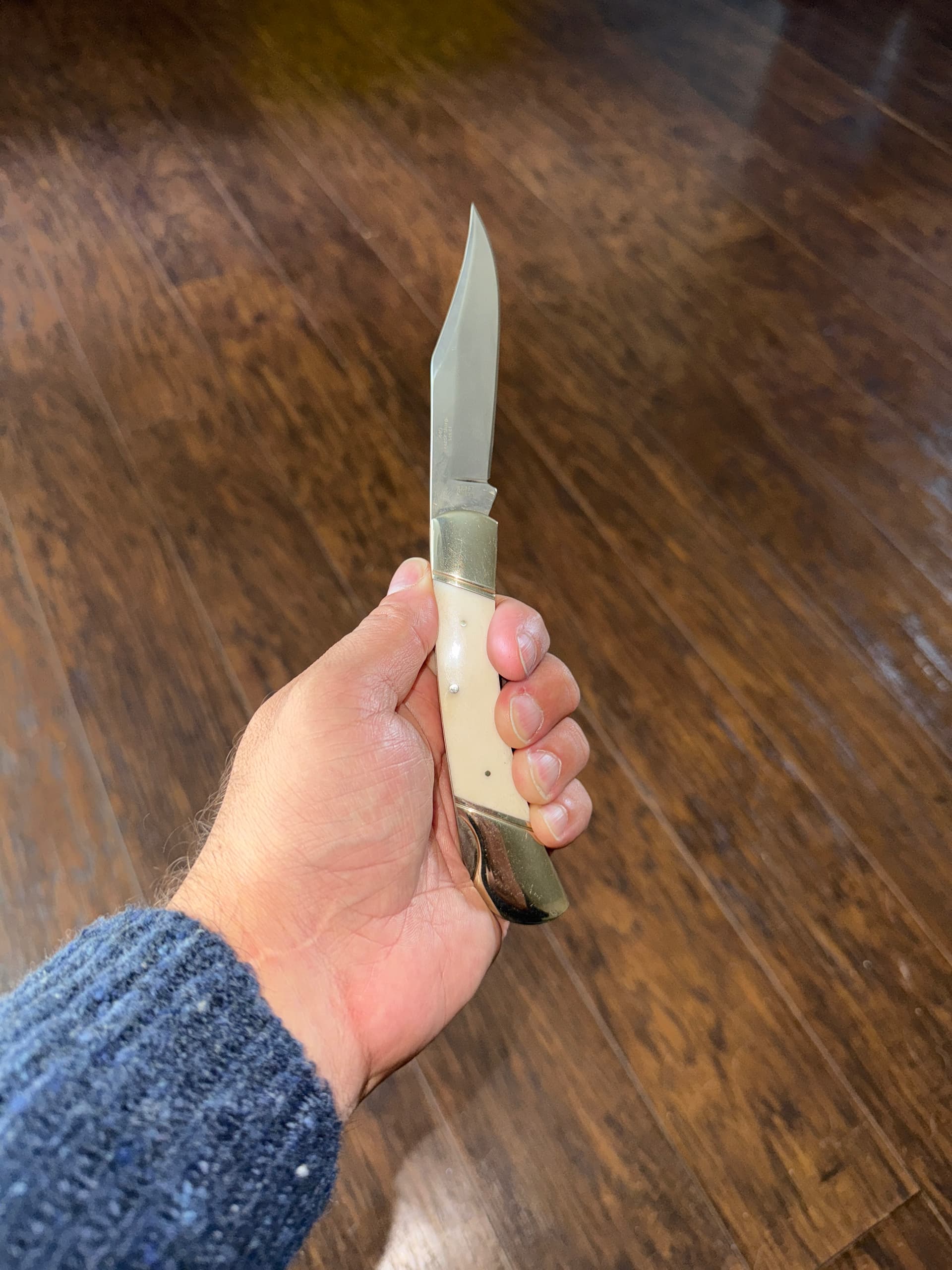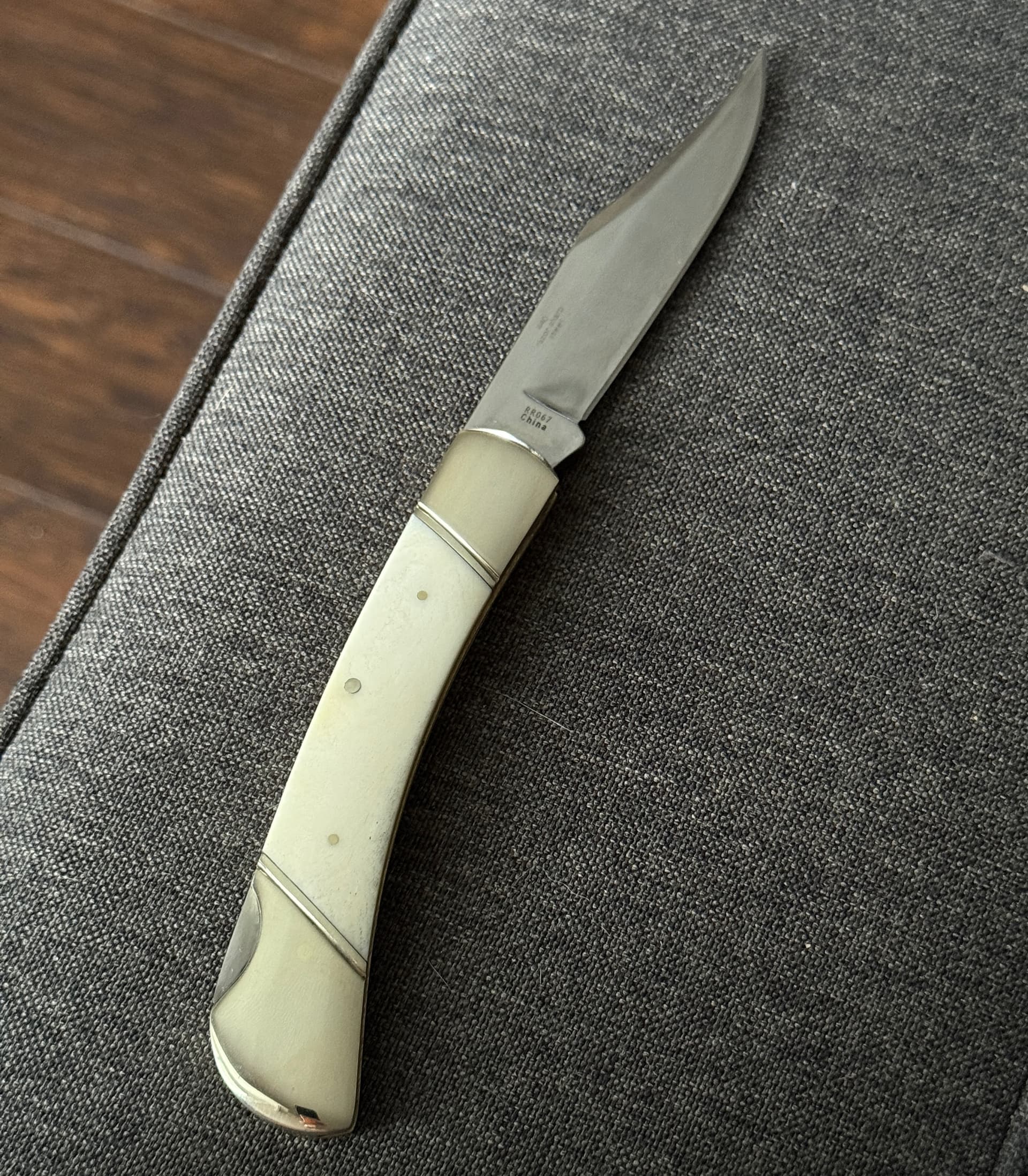 Here is link where it is compared to the Buck 110. Which I was convinced that it was. But as someone stated it was likely a custom 110. The clip point seems a little more dramatic than the 110 though.