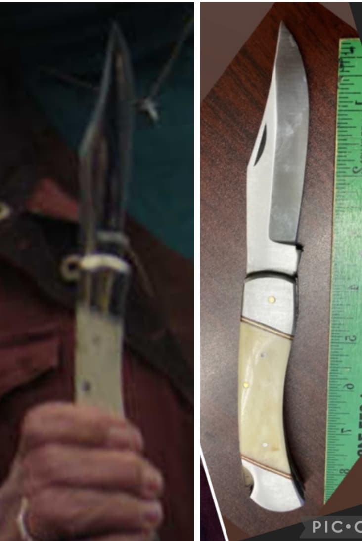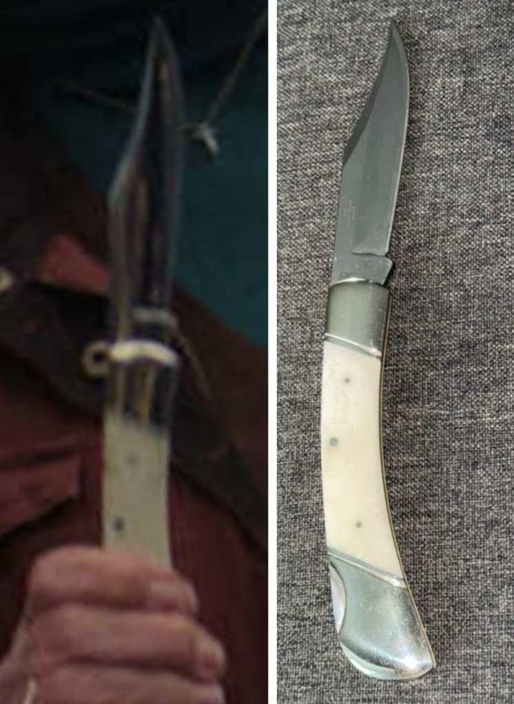I noticed in the scene under the bridge, where you see the knife in the ground after Corey is pulled off screen, the nail nick on the blade seems to be the same as this knife. Also looks like it has some ghostly image on the scale. What I think is the nail nick could just be a shadow though.