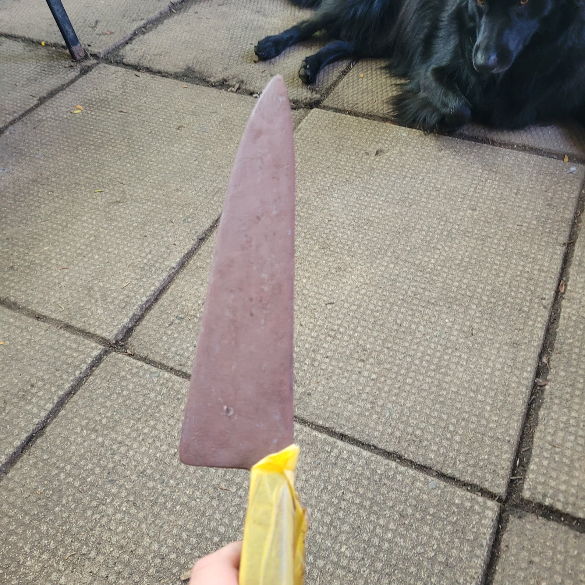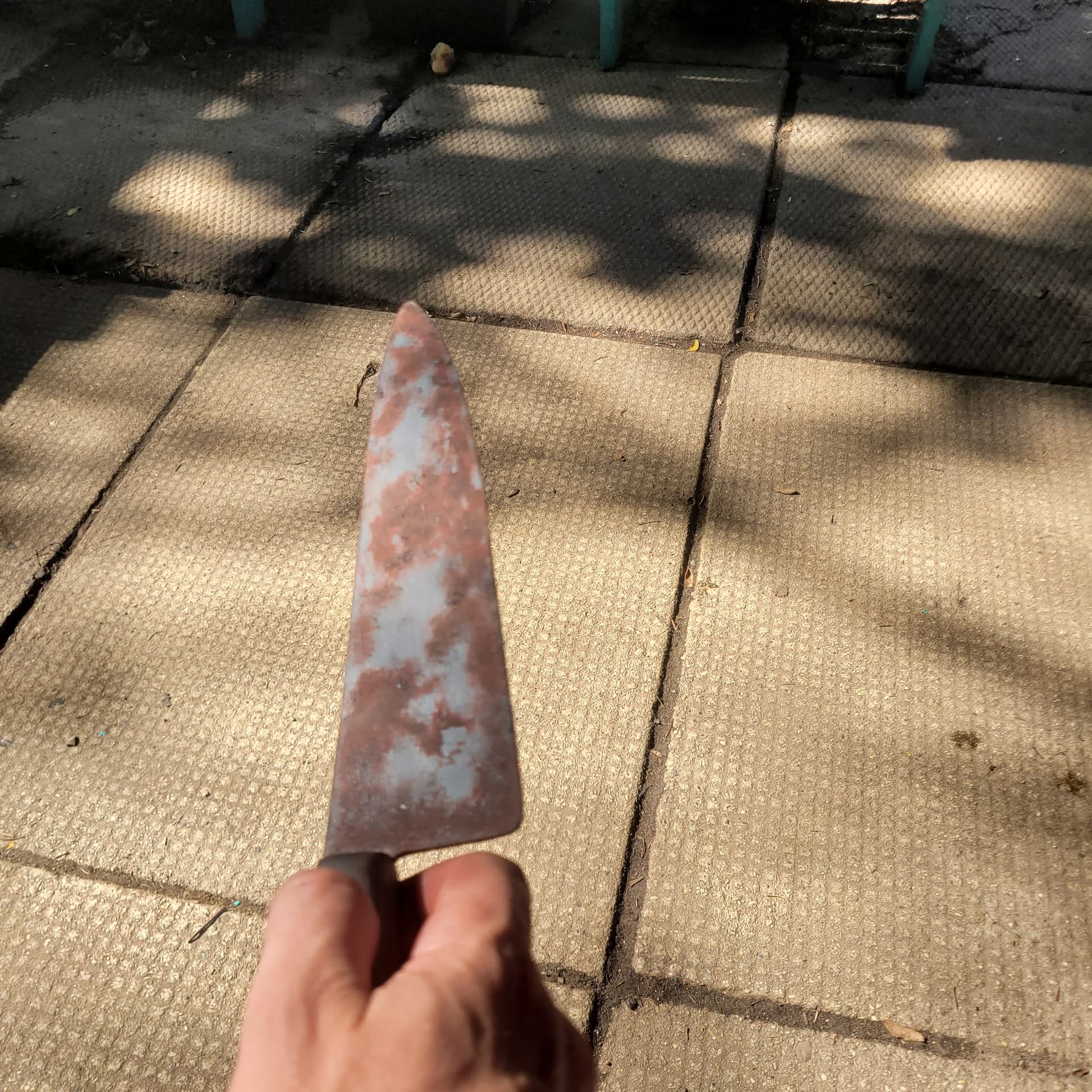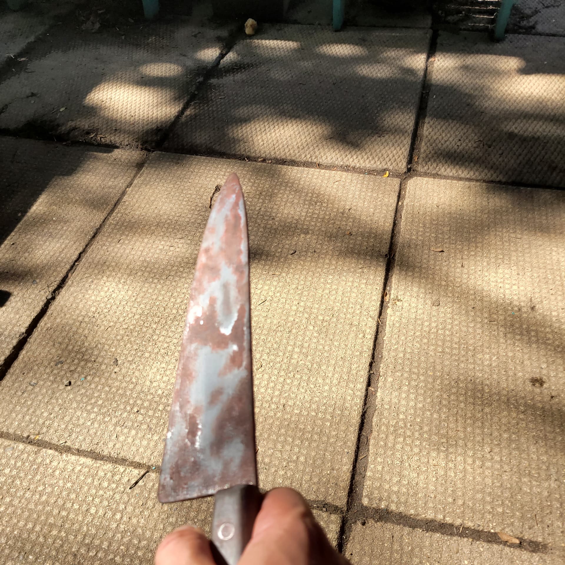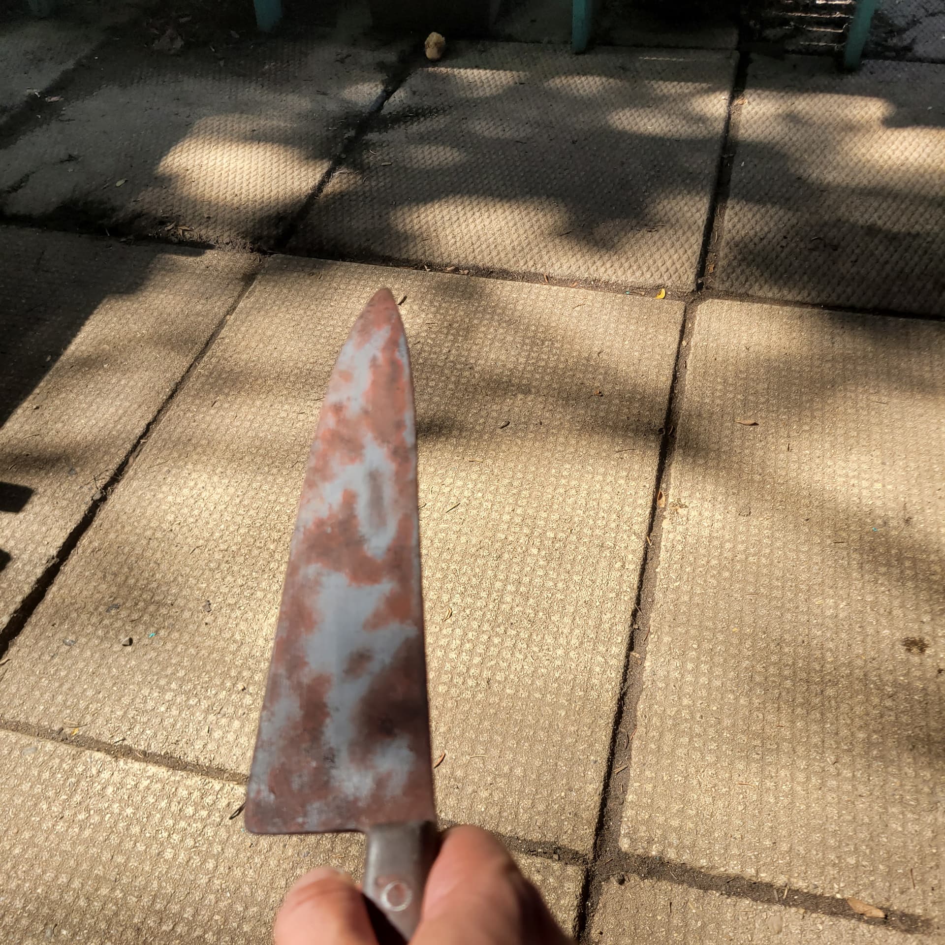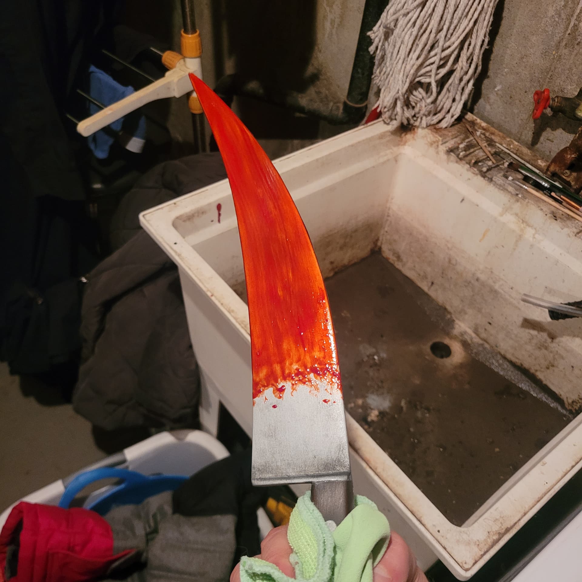 So ive started rusting the Ends knife gunna go out today and get some more spray paint (this is just acrylic for rust, the nozzle on my red oxide spray paint broke , it will be more brown than red oxide but i feel the redoxide is a good base) Kinda want a second opinion , should i do the rust fx then spray over with metallic paint and sand it down again ? Doing some splatter fx on the bucket too.