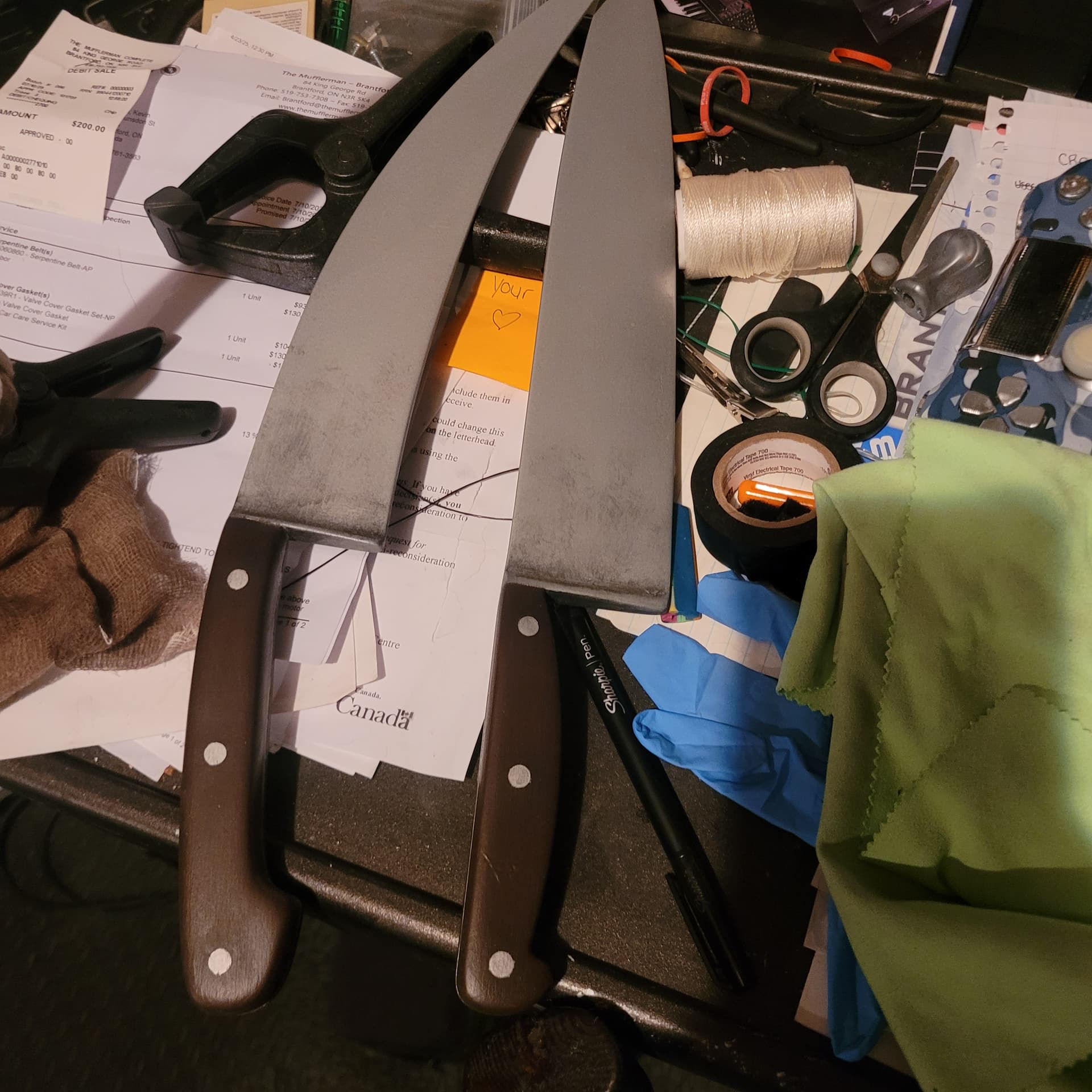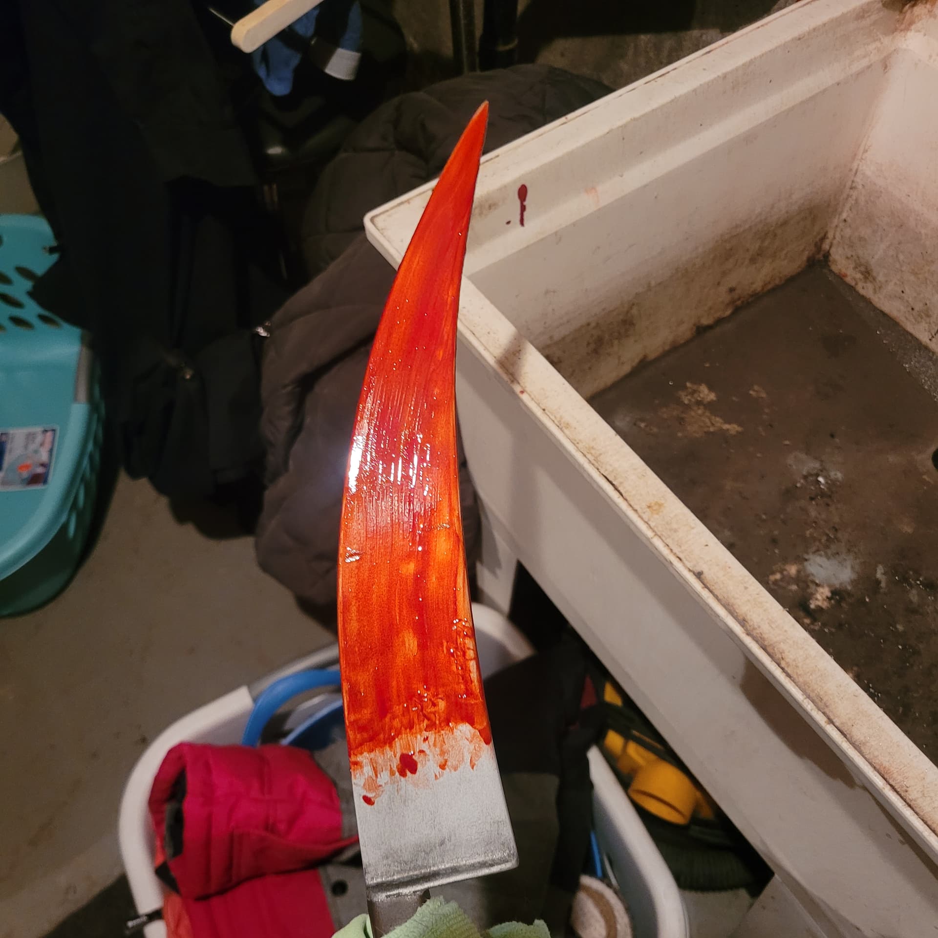 Coming together nice got clear coat on the knives and axe now. And thats how dark and glossy the permablood dries.
