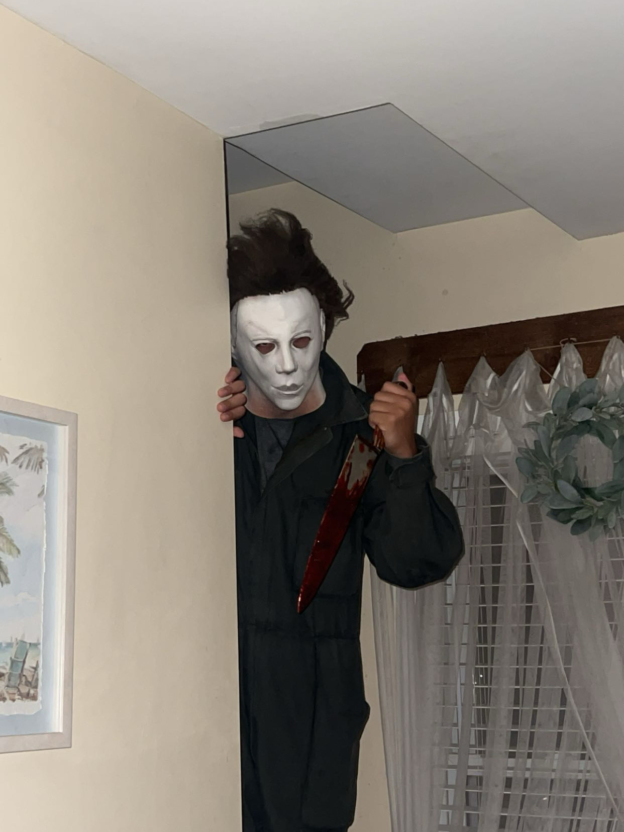 I like the blood idea you got going on there. You should do another layer over the line splatters. Have to give the blood some movement and then have it drip down a bit , know what I mean? Looking grundgy af though. And i know what your saying about photos hard to see the layers.