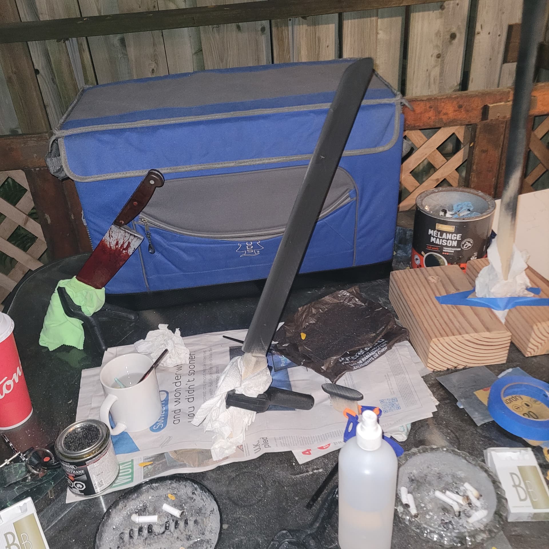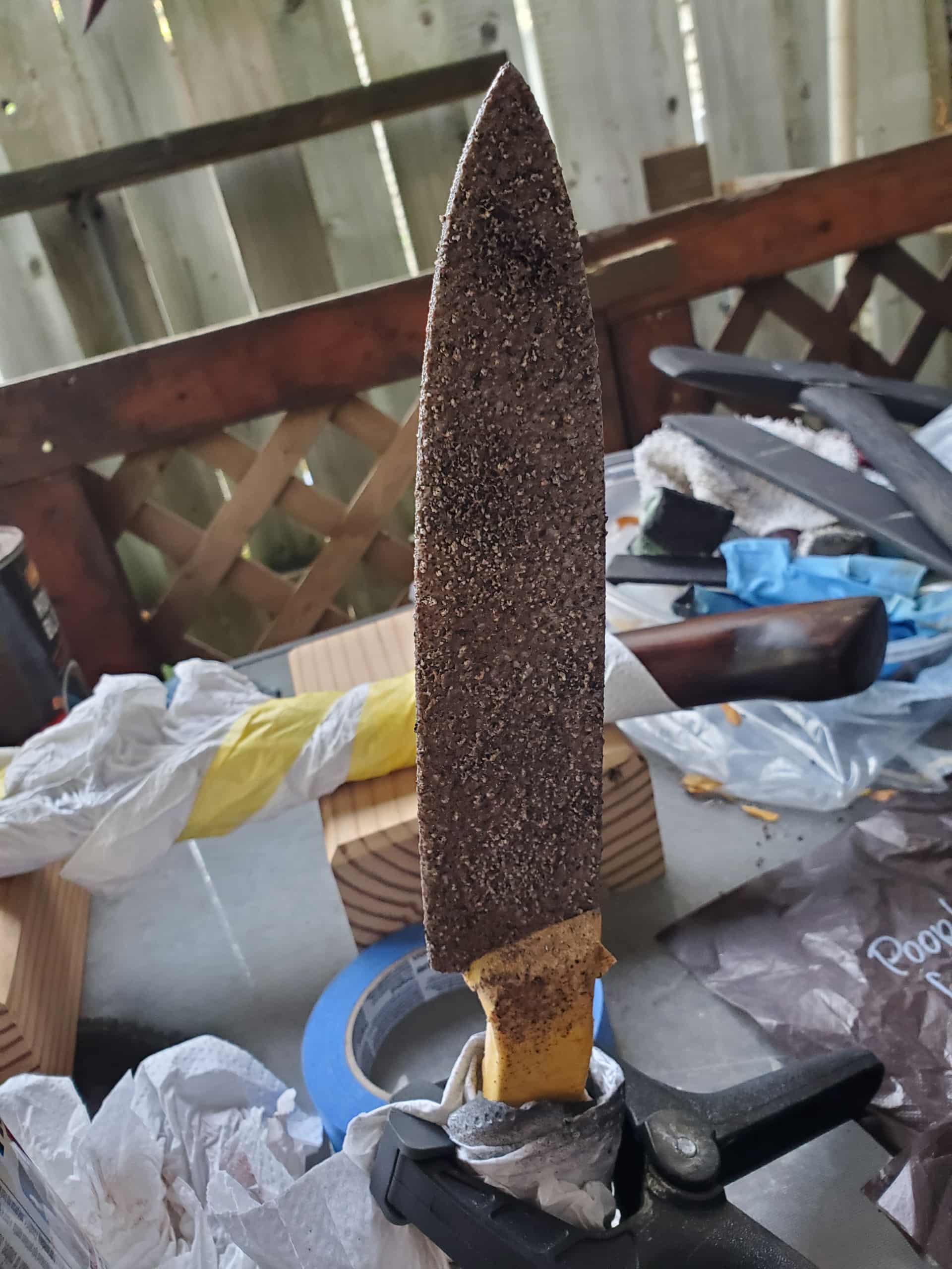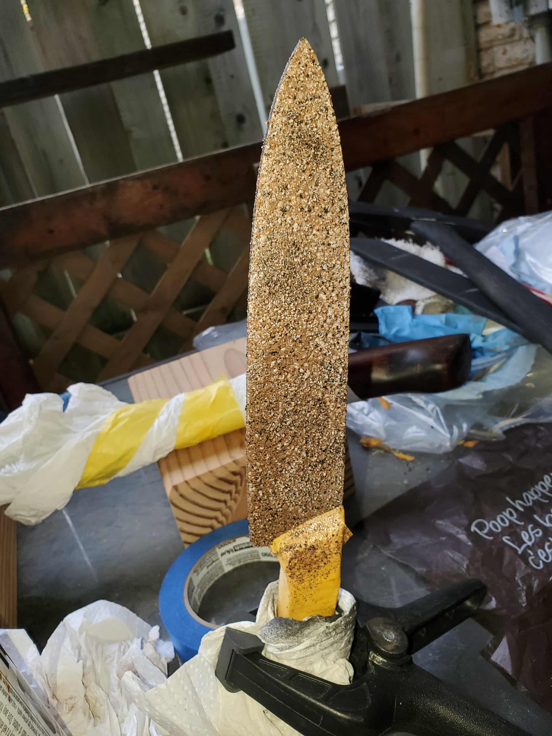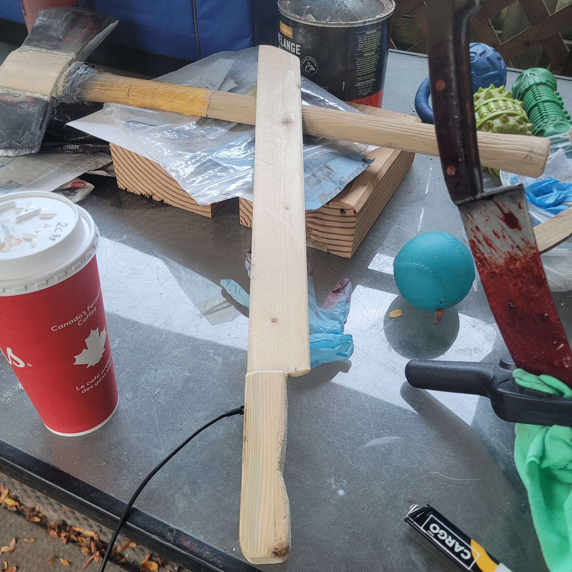 So I’m just gunna turn the shorter surgical knife into a machete, might change up the handle a bit , and that’s just the base coat of blood for the Hallgan bar it will look better.