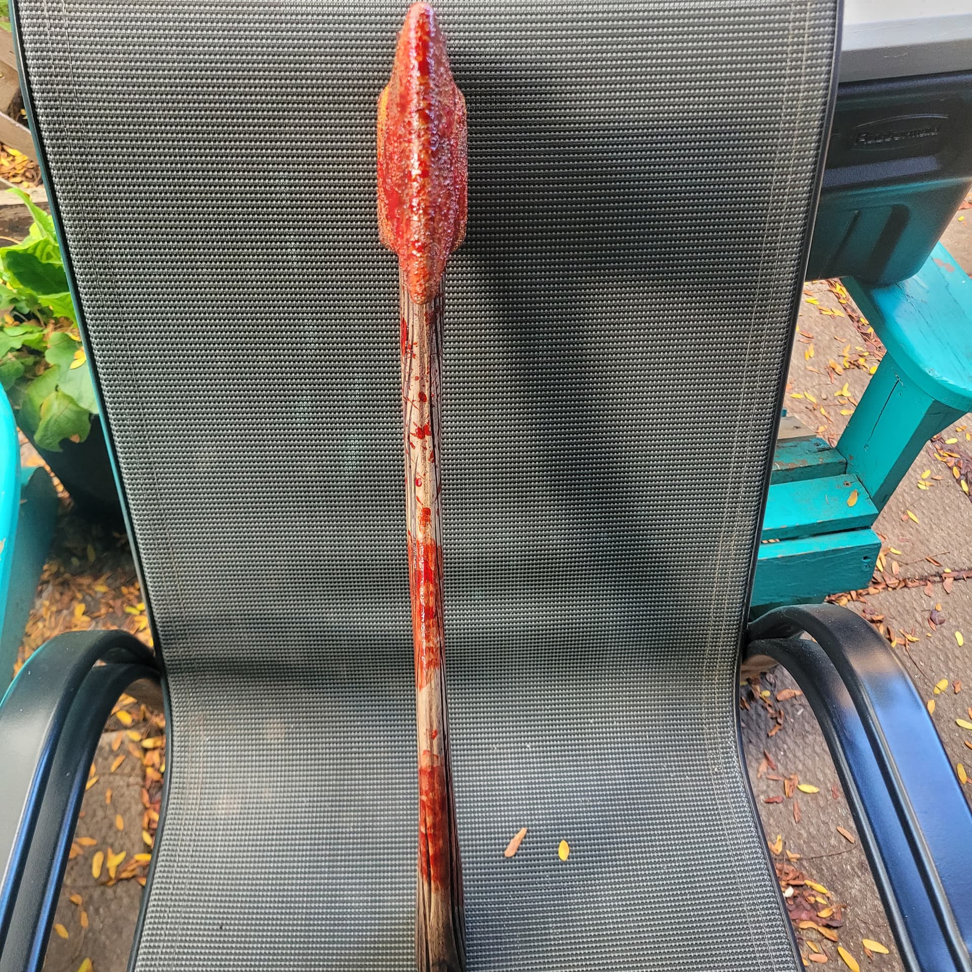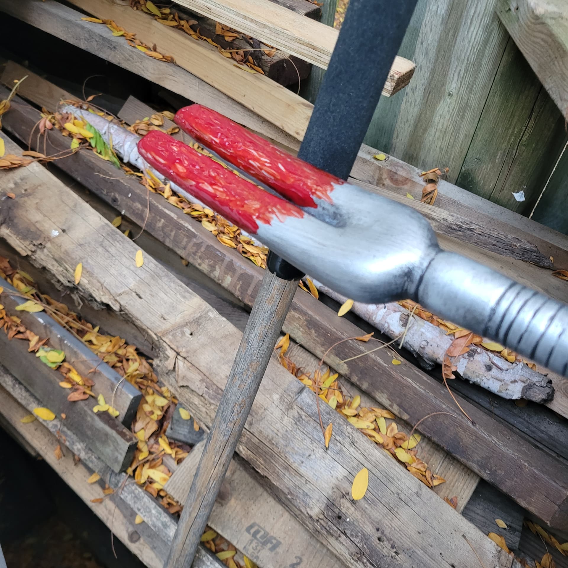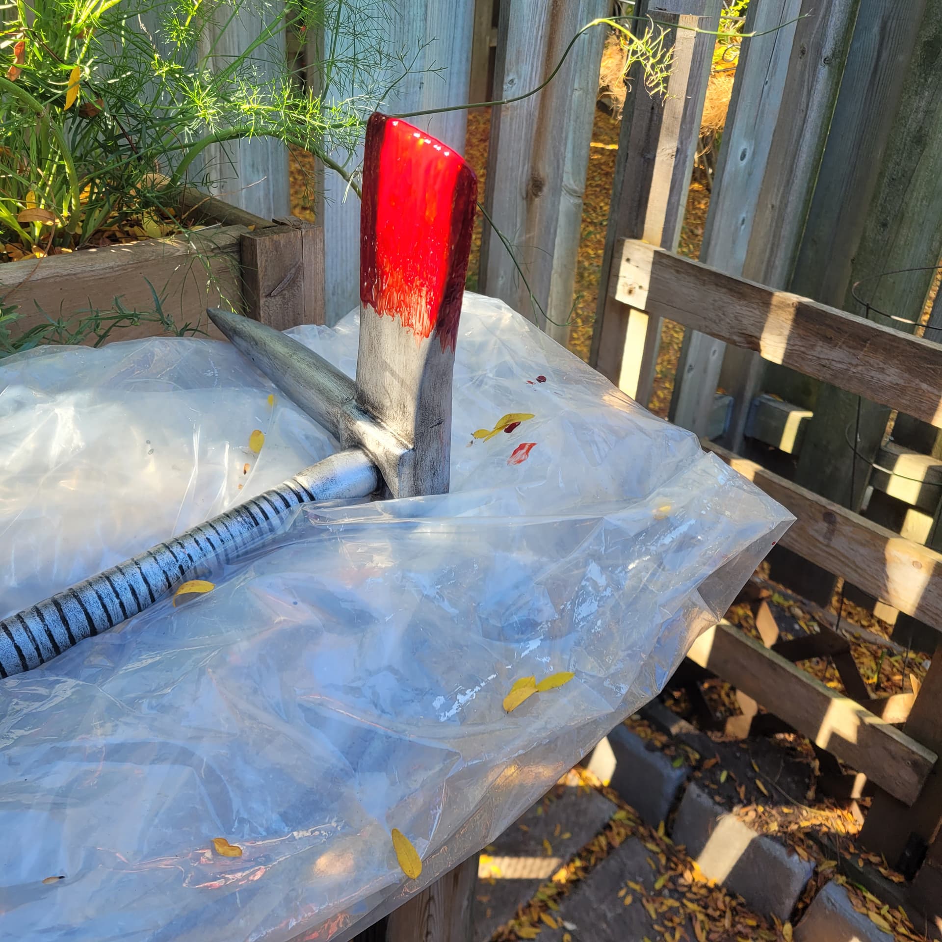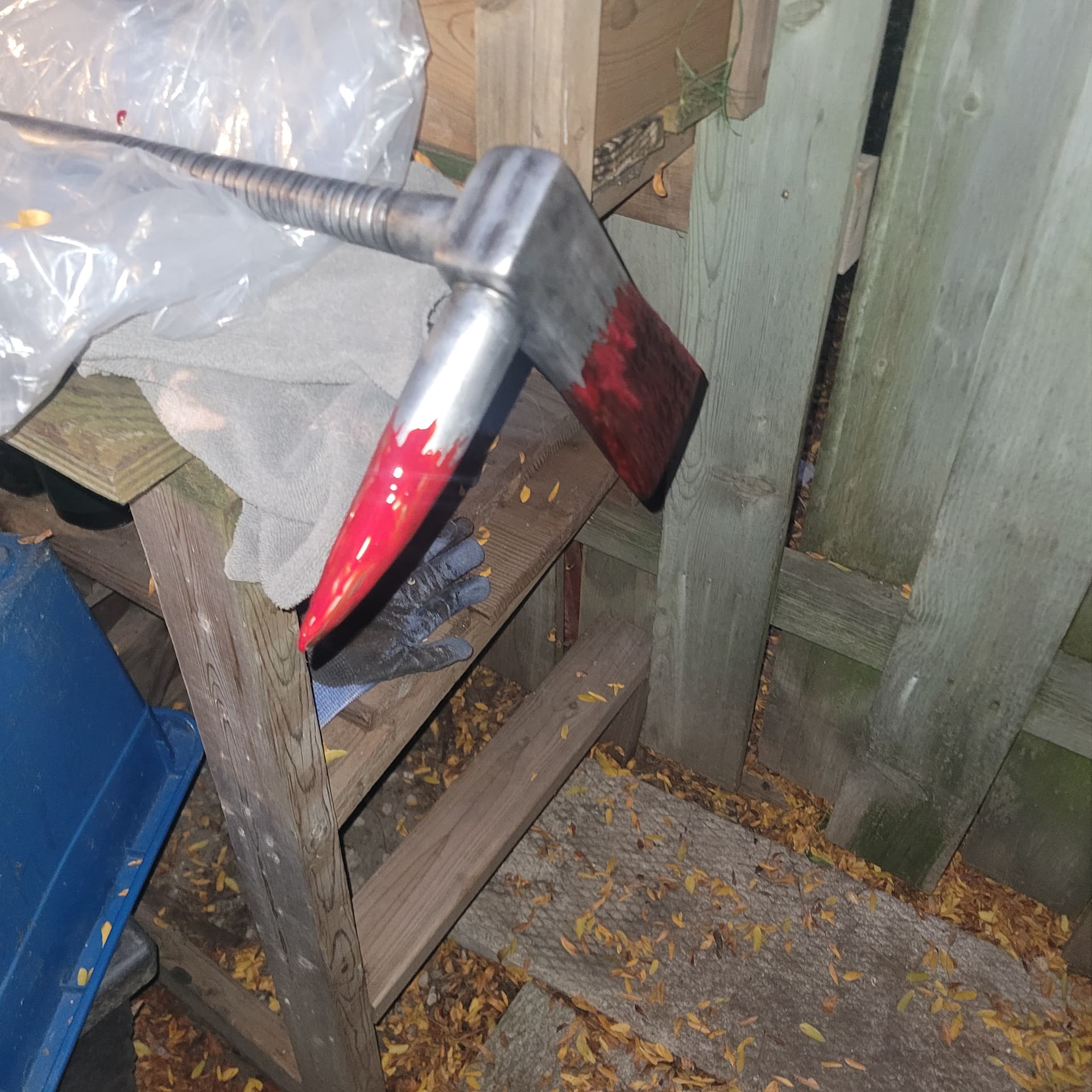 So I’m just gunna turn the shorter surgical knife into a machete, might change up the handle a bit , and that’s just the base coat of blood for the Hallgan bar it will look better.