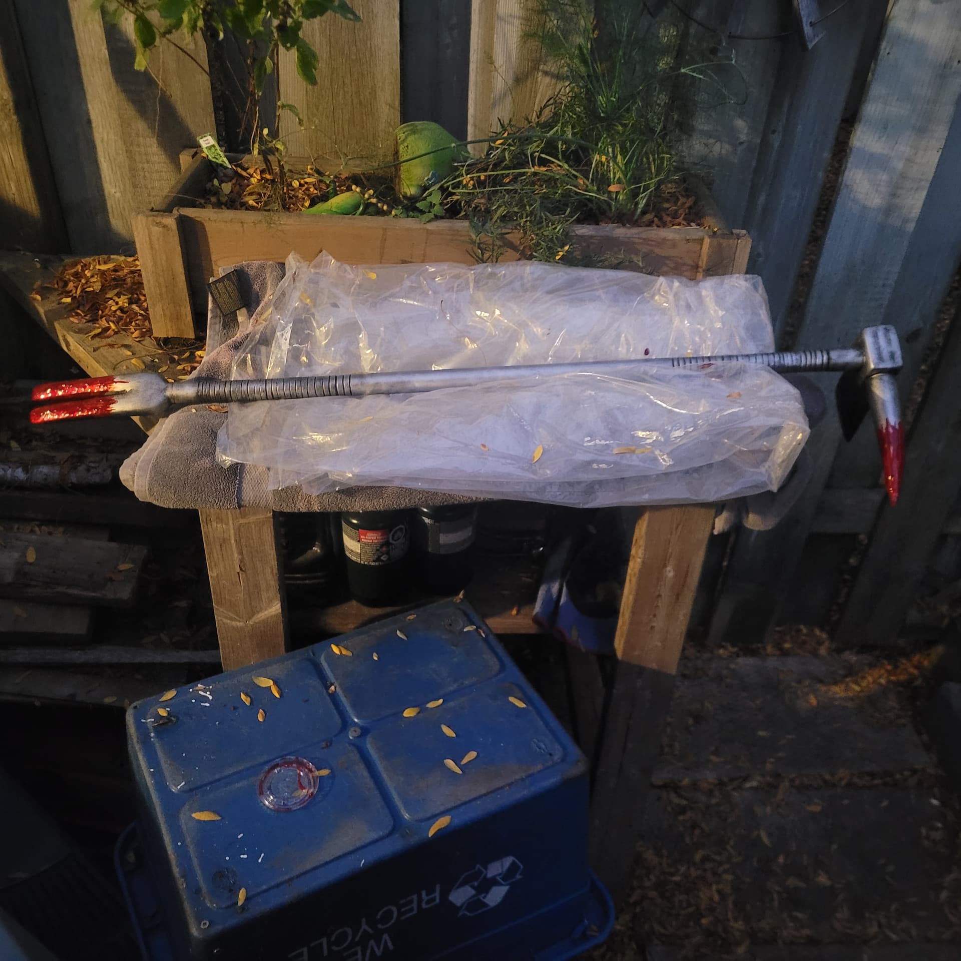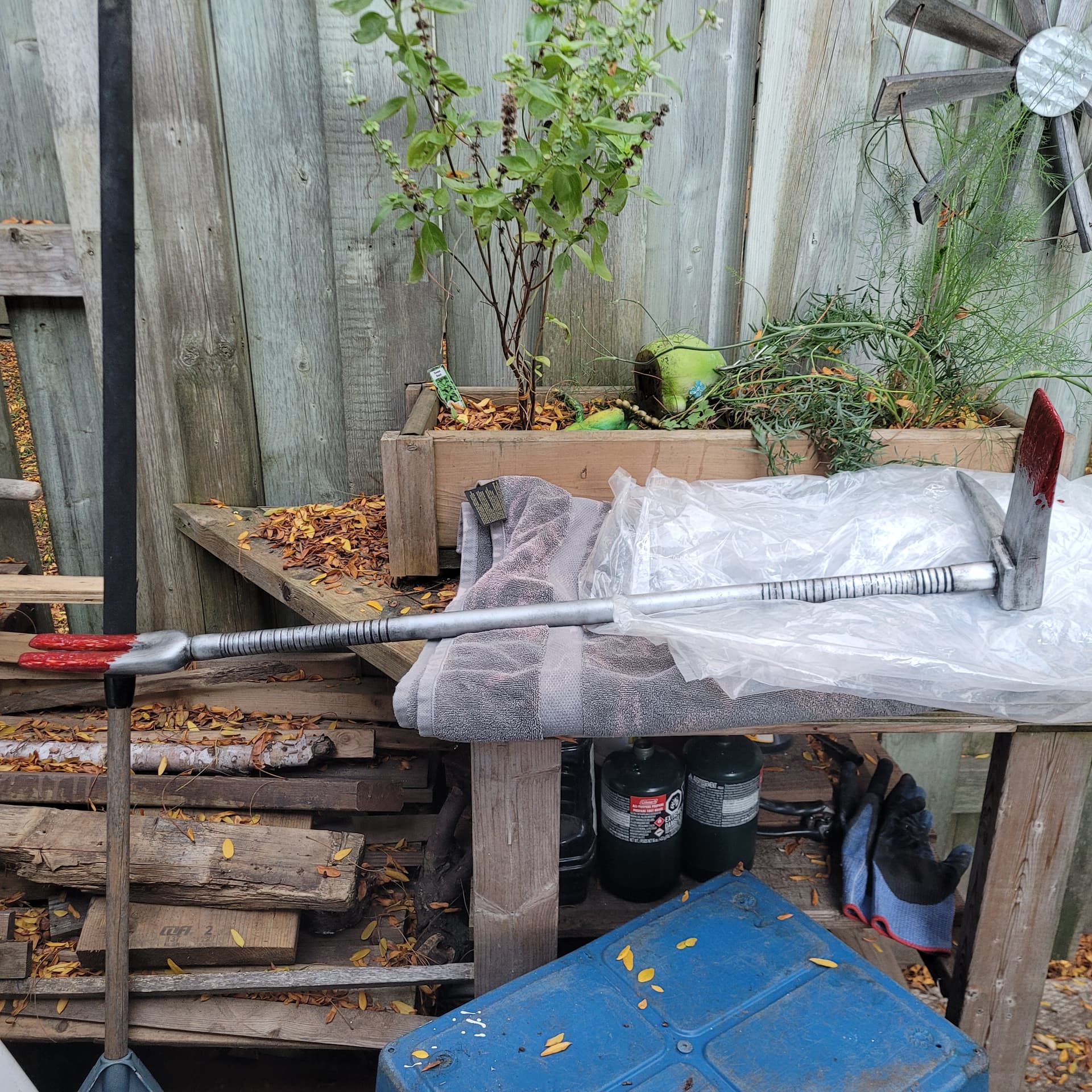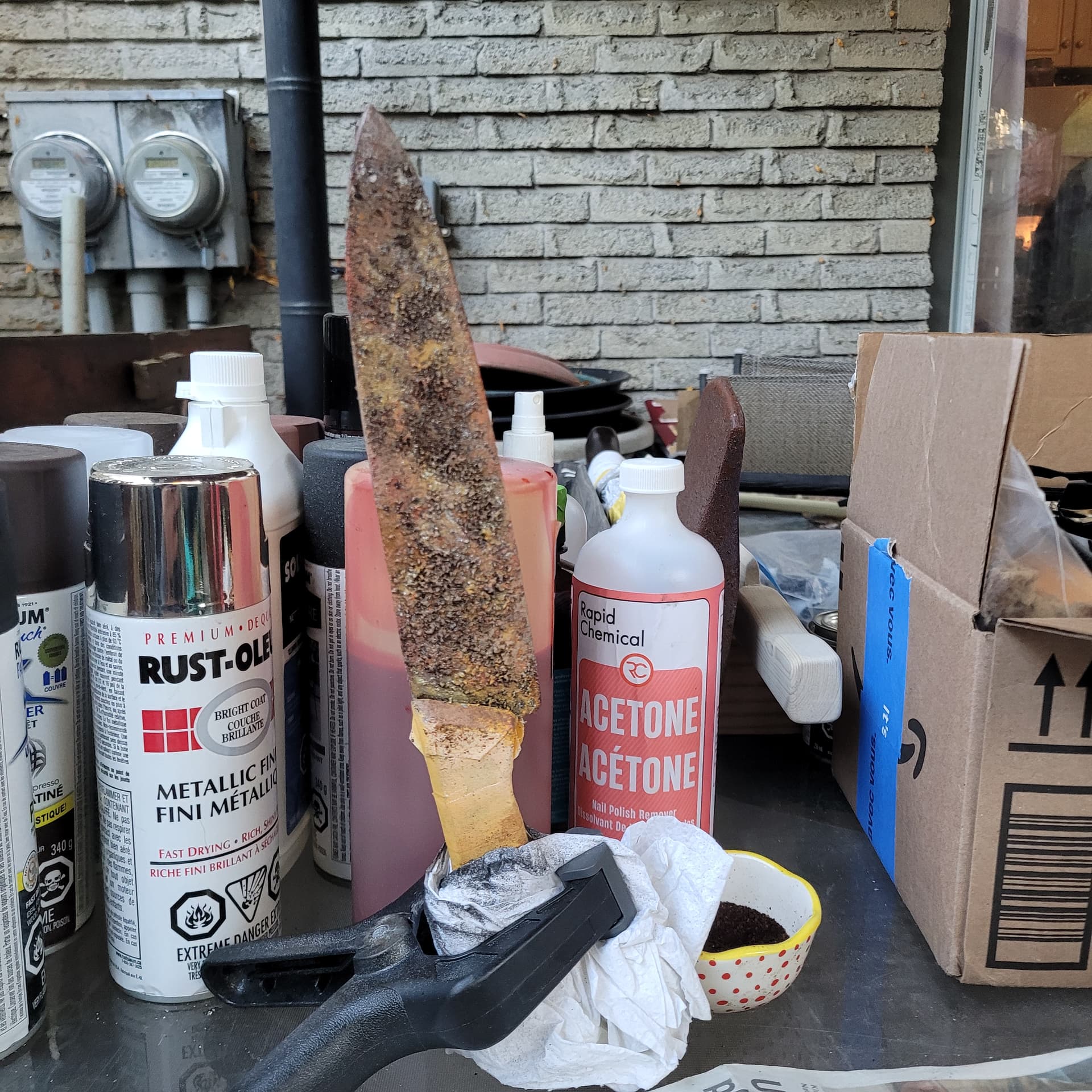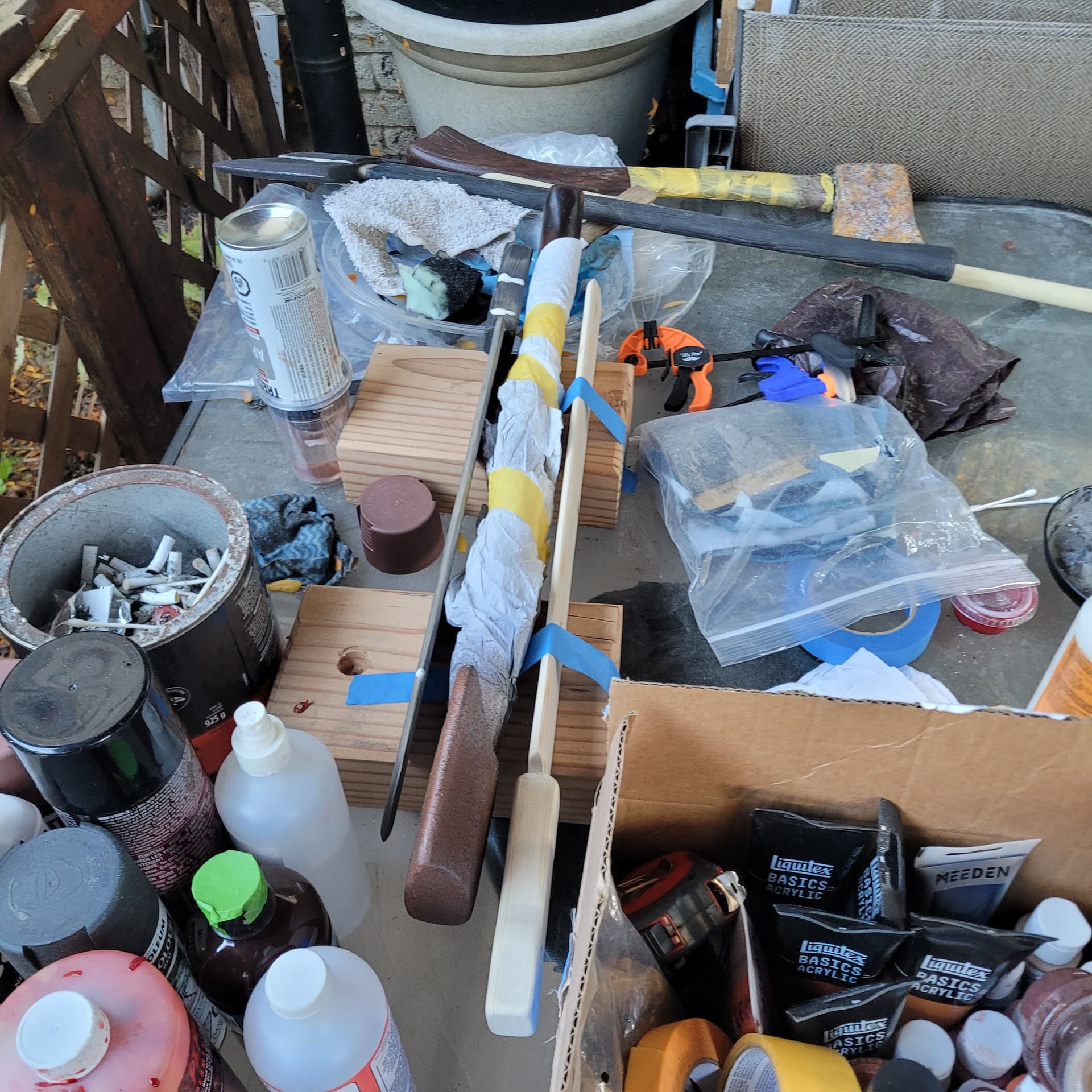 So I’m just gunna turn the shorter surgical knife into a machete, might change up the handle a bit , and that’s just the base coat of blood for the Hallgan bar it will look better.