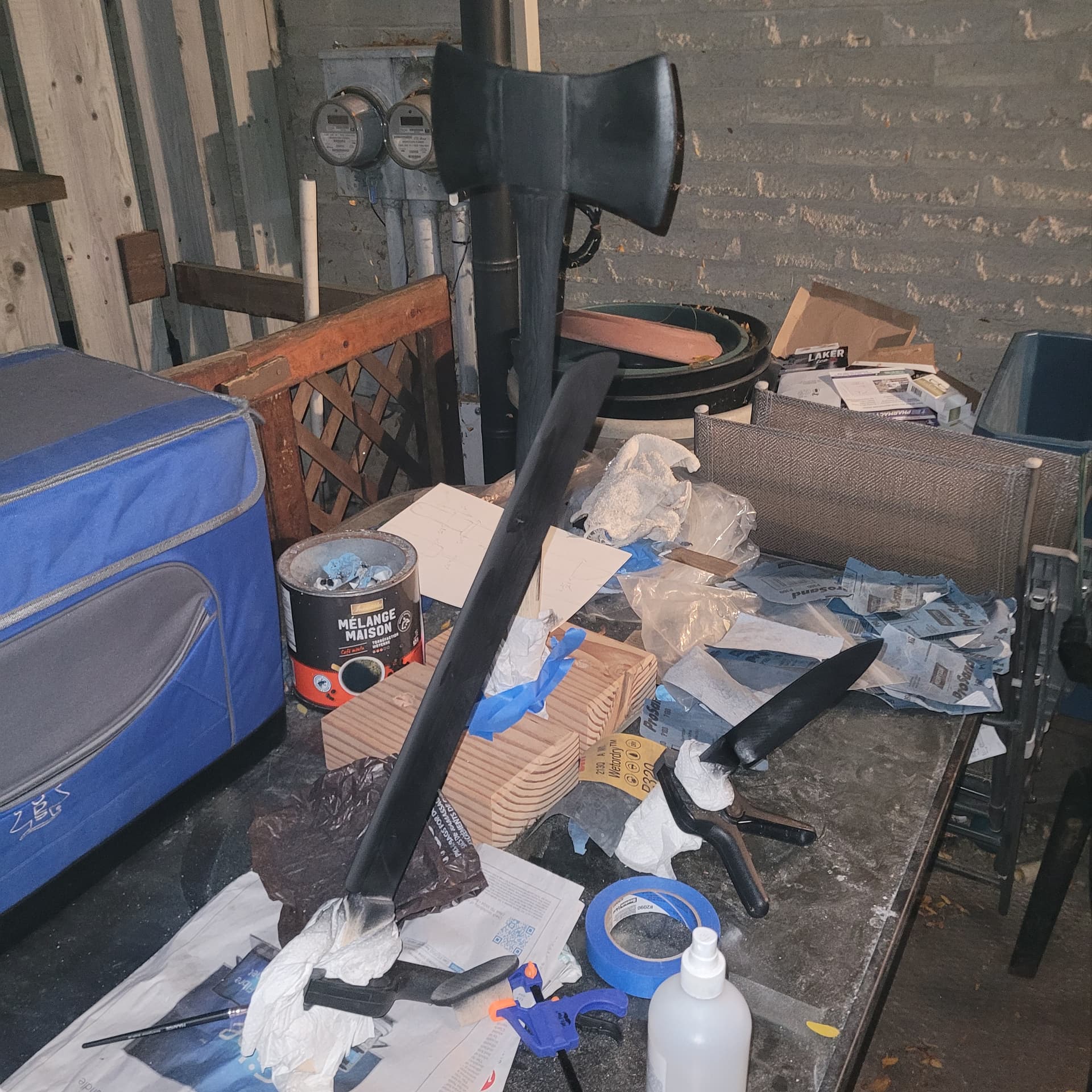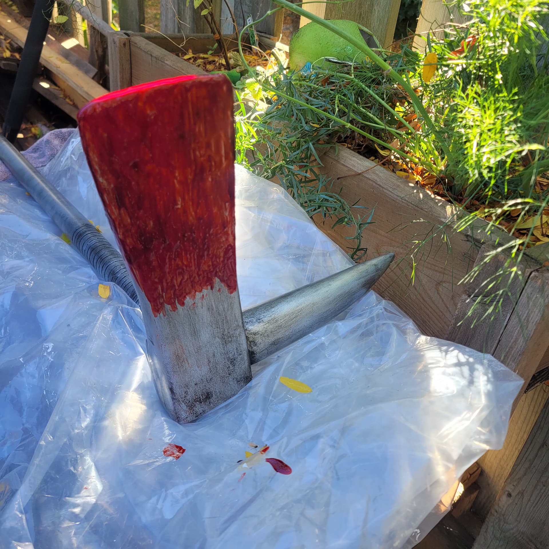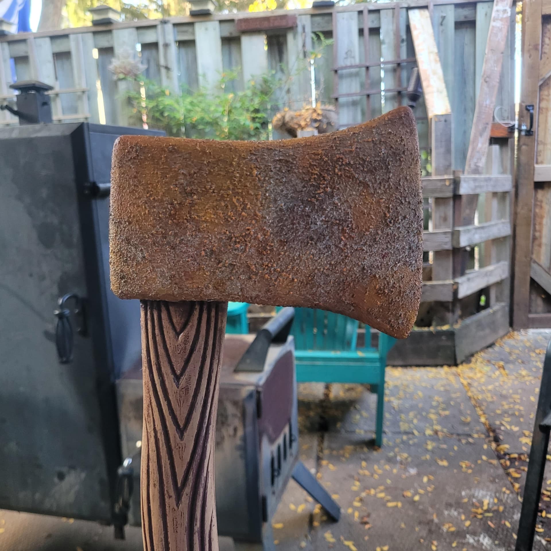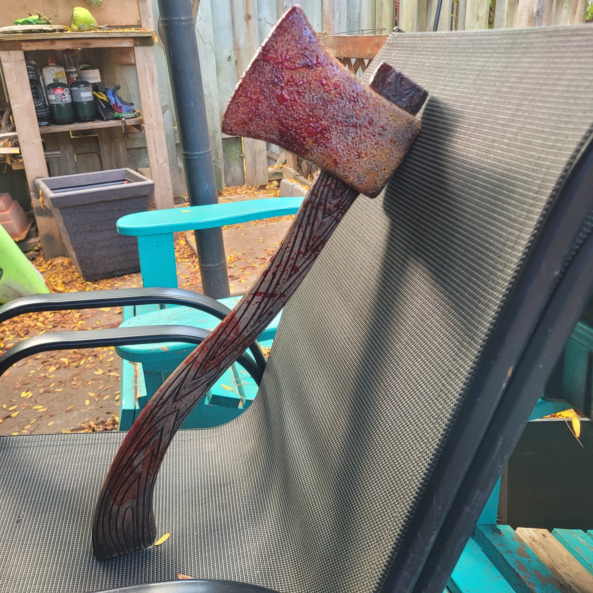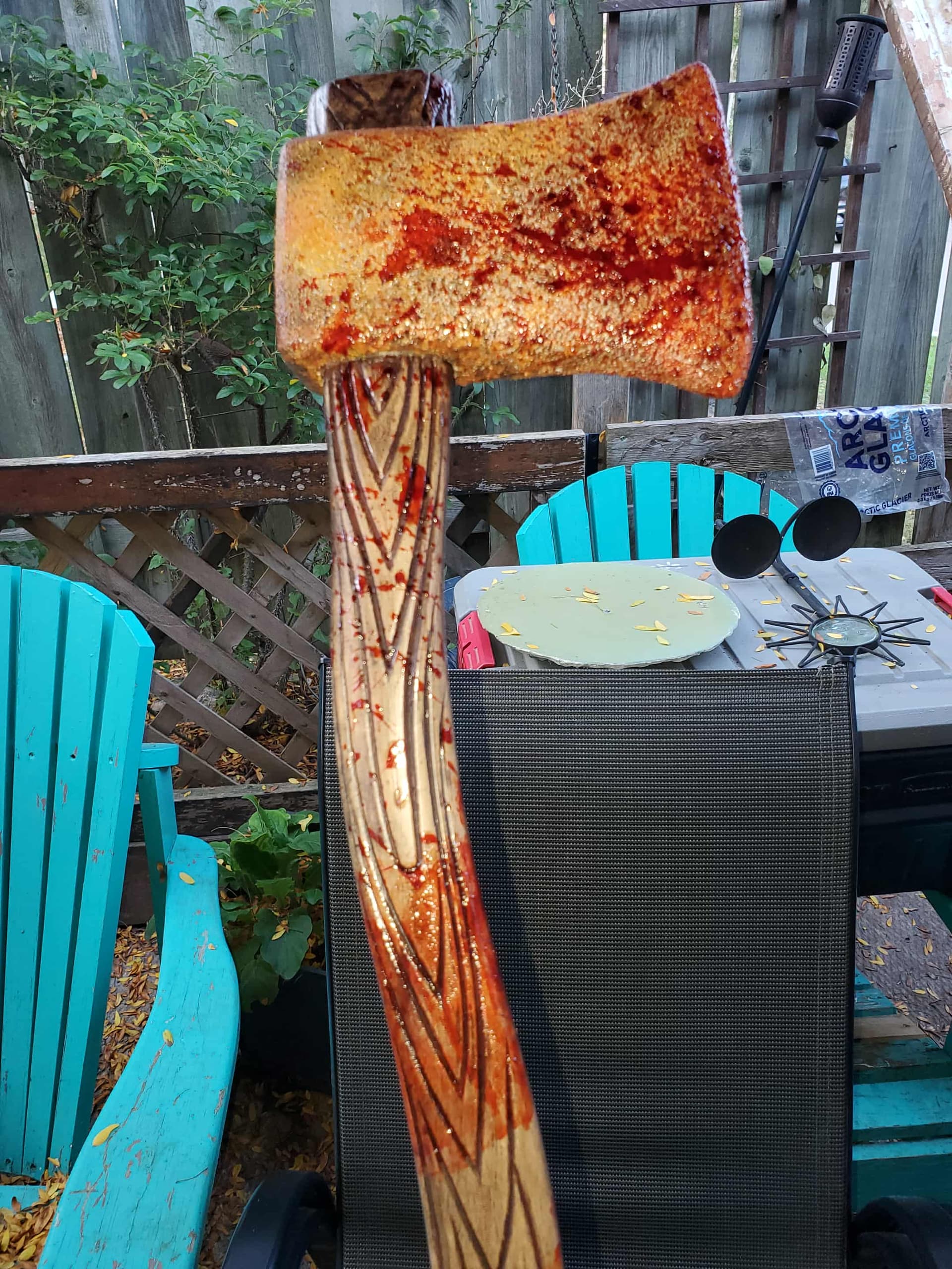 Gf wanted to make a a rusty axe, I taught her some stuff, she did most of the work, sanding and painting , blood splatter. We did a few mods as well. Some blood work left and then clear coat and it’s done!