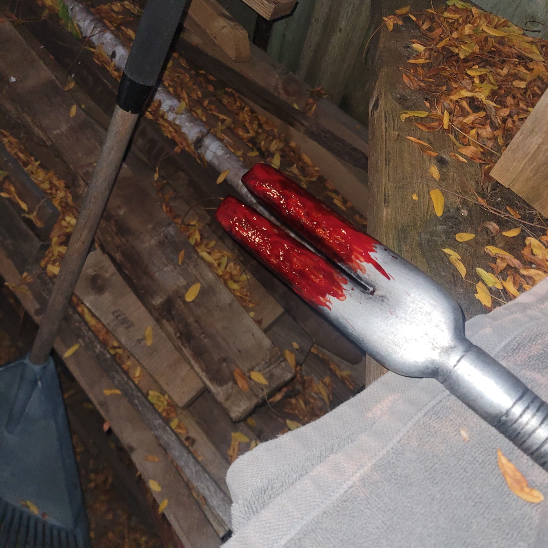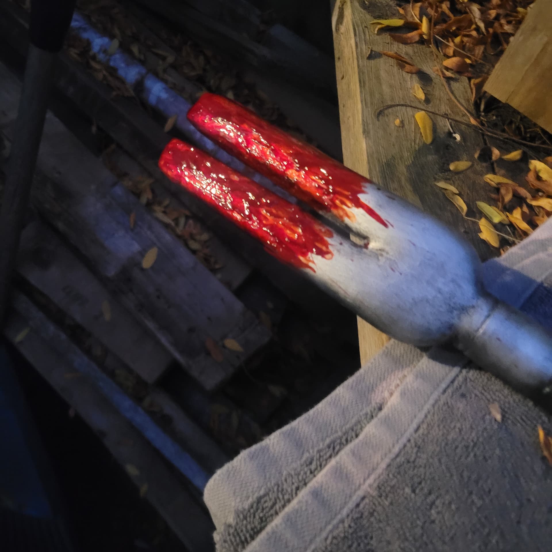 blood is darker in person don’t know why it looks so bright on the phone.