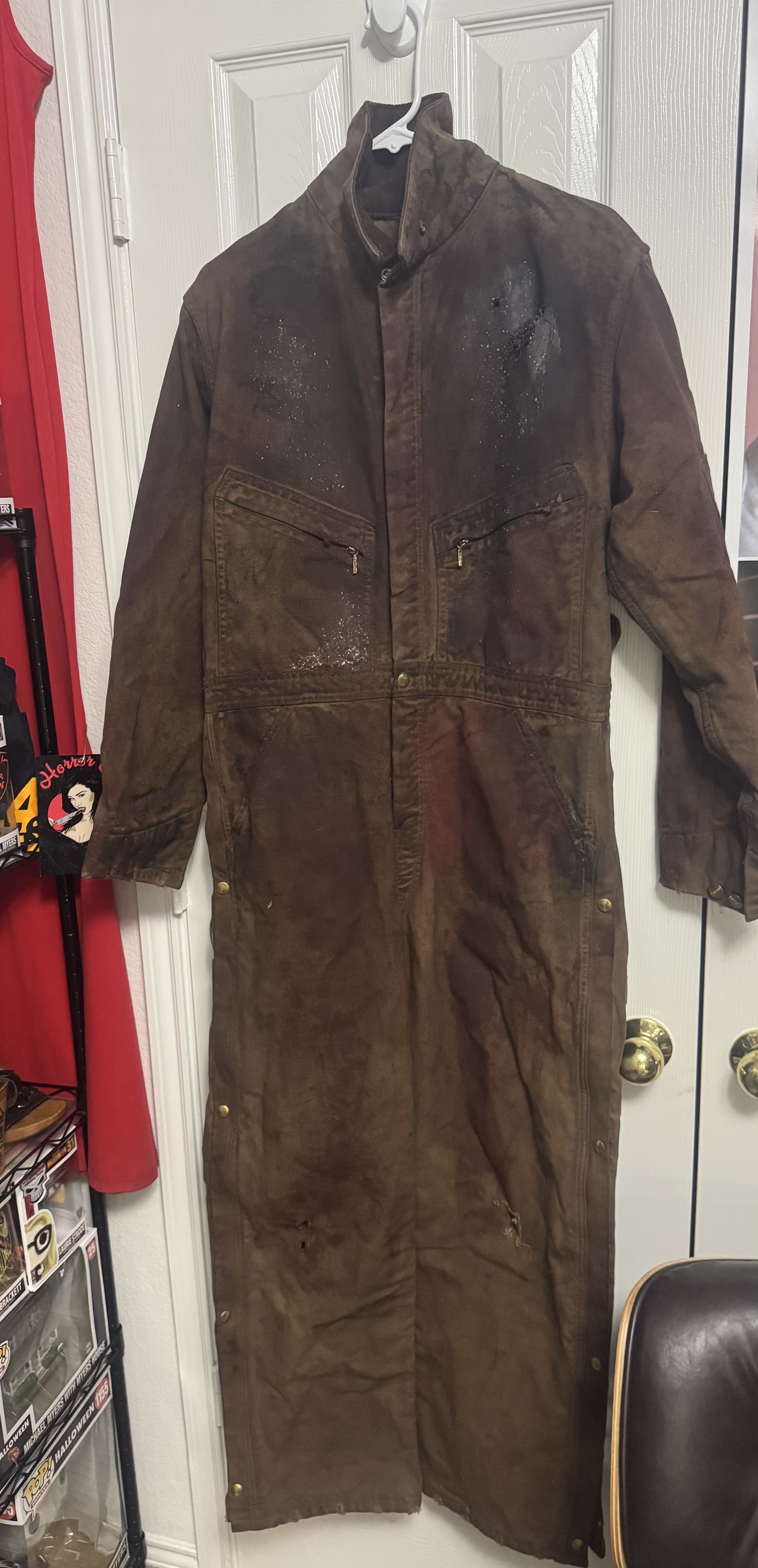 Screen used pair of coveralls from Rob Zombies Halloween 2 used in the end scenes where Laurie is stabbing Michael. Coveralls used on a dummy.