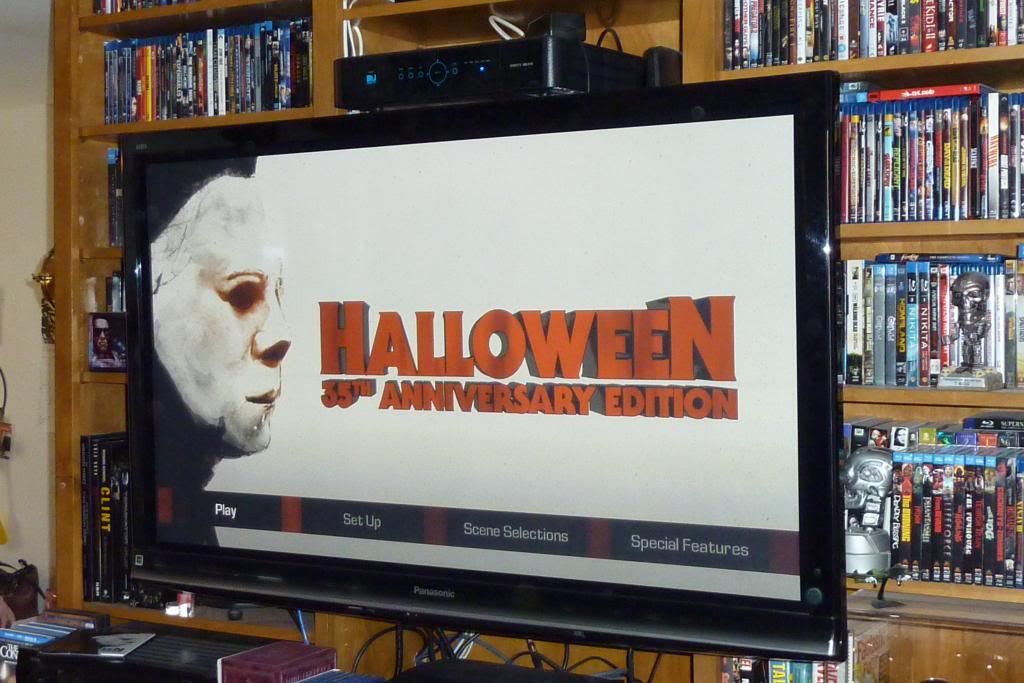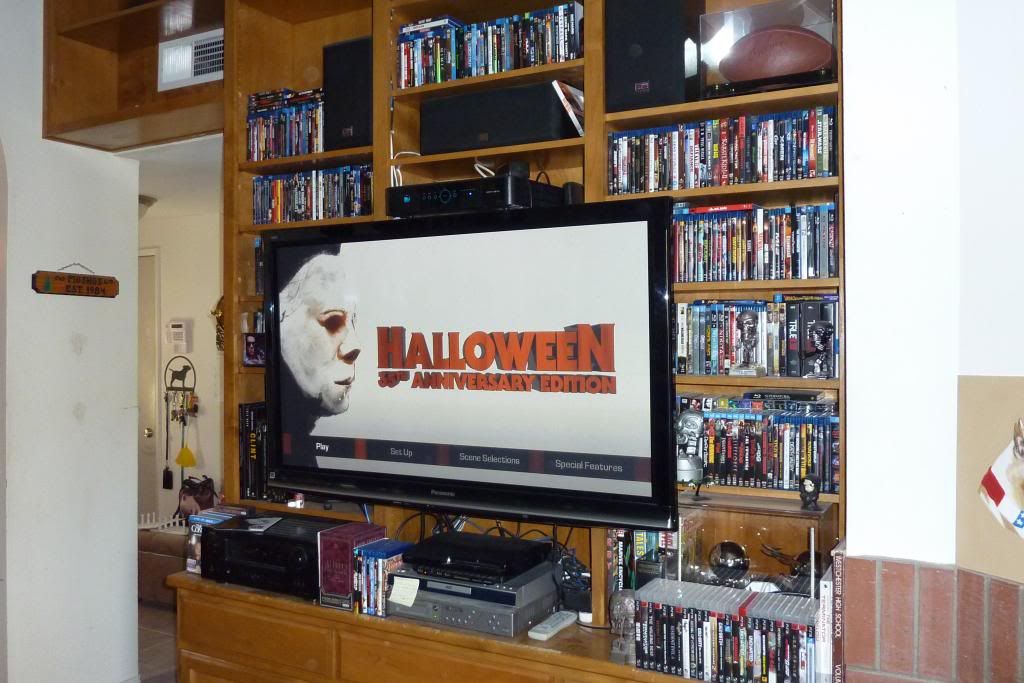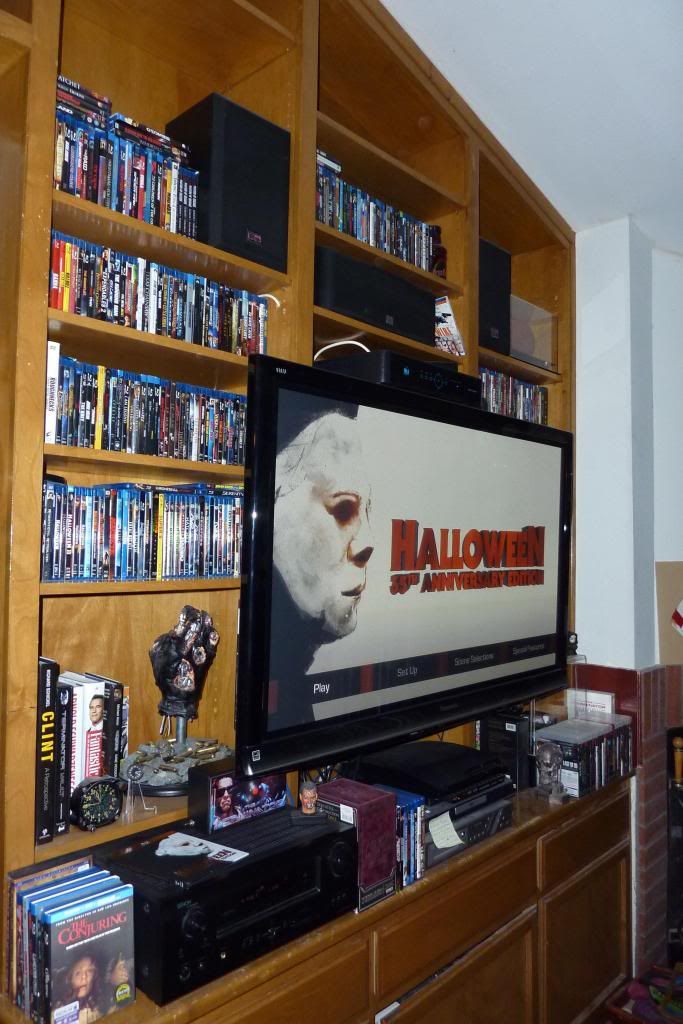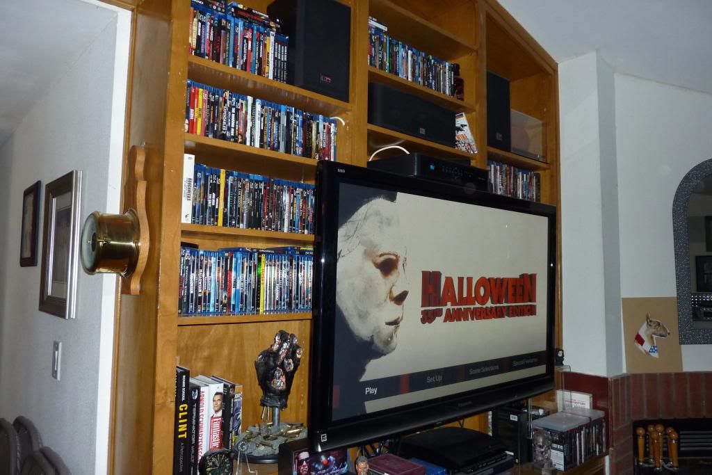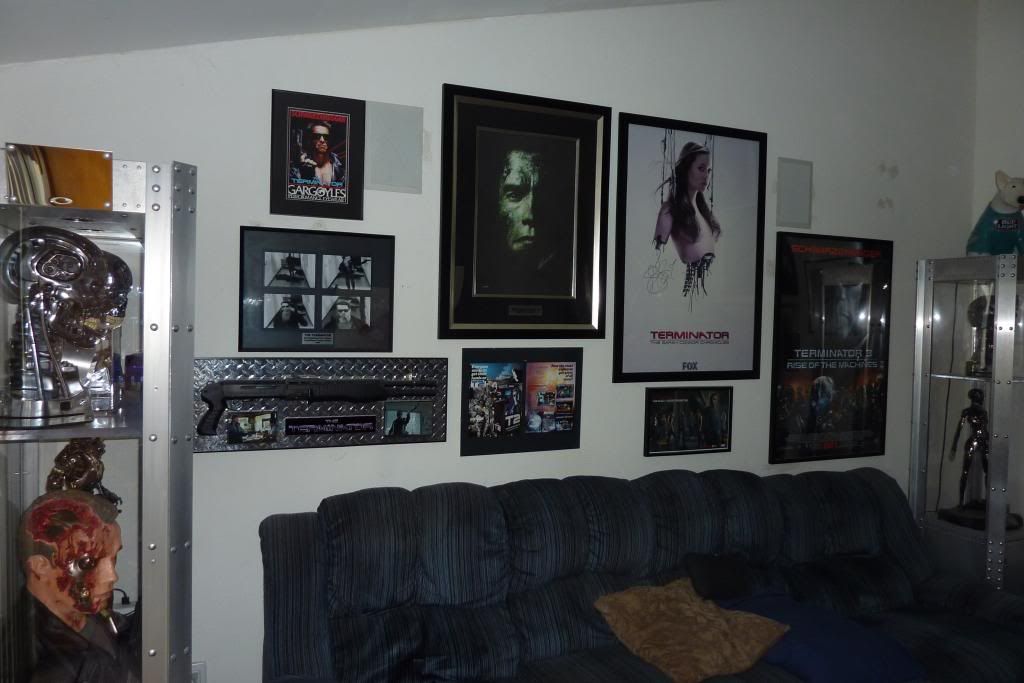 Just wanted to share my LIVING ROOM / THEATER ROOM with you guys. MYERS ARTMARK WALL and DETOLFS with my MYERS MASKS and other various collectibles. The OAKLEY cabinets contain my TERMINATOR COLLECTIBLES. Also my TELEVISION and BLURAY collection. Hope you like what you see. Thanks for looking and welcome to my LIVING ROOM Mike