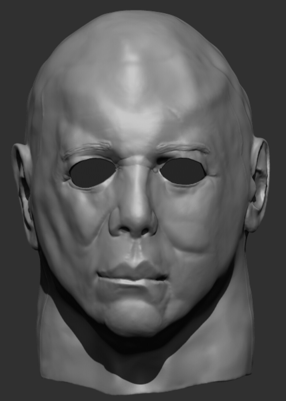 Okay so I decided to start over, I scanned my tots 78 mask and threw in other references of the James mangrum sculpt to give me a better base line. I’m referring heavily to his sculpt as well as the hallway and phone scenes and I think this version looks a lot better so far.
