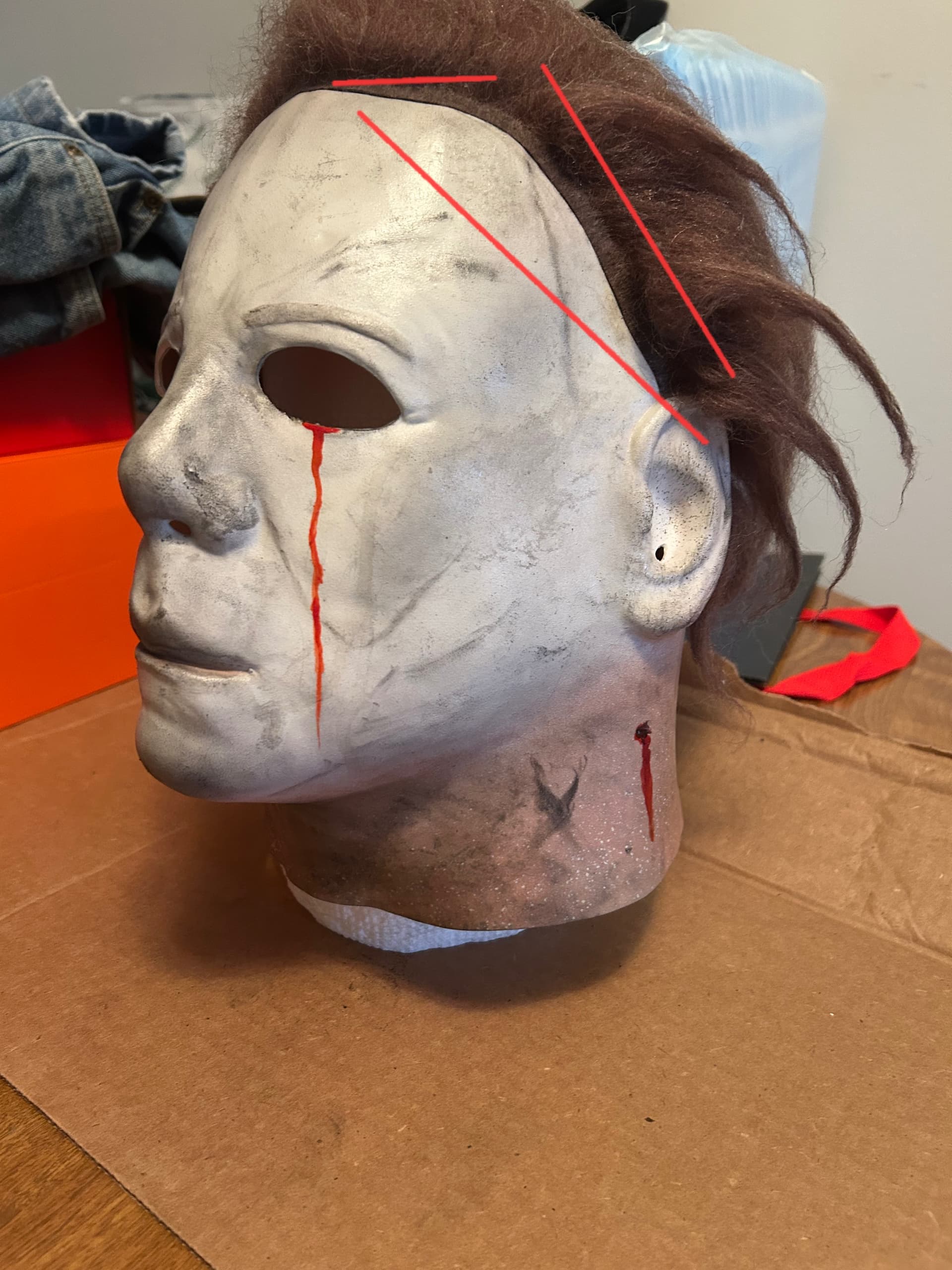 I don’t k ow that I am confident enough to put glue on this thing for the hair, I added a little more to the mask to and teased the air a bit and this is what I came up with, I know it’s not exact, but it’s just my first try at customizing so it isn’t so off the shelf.