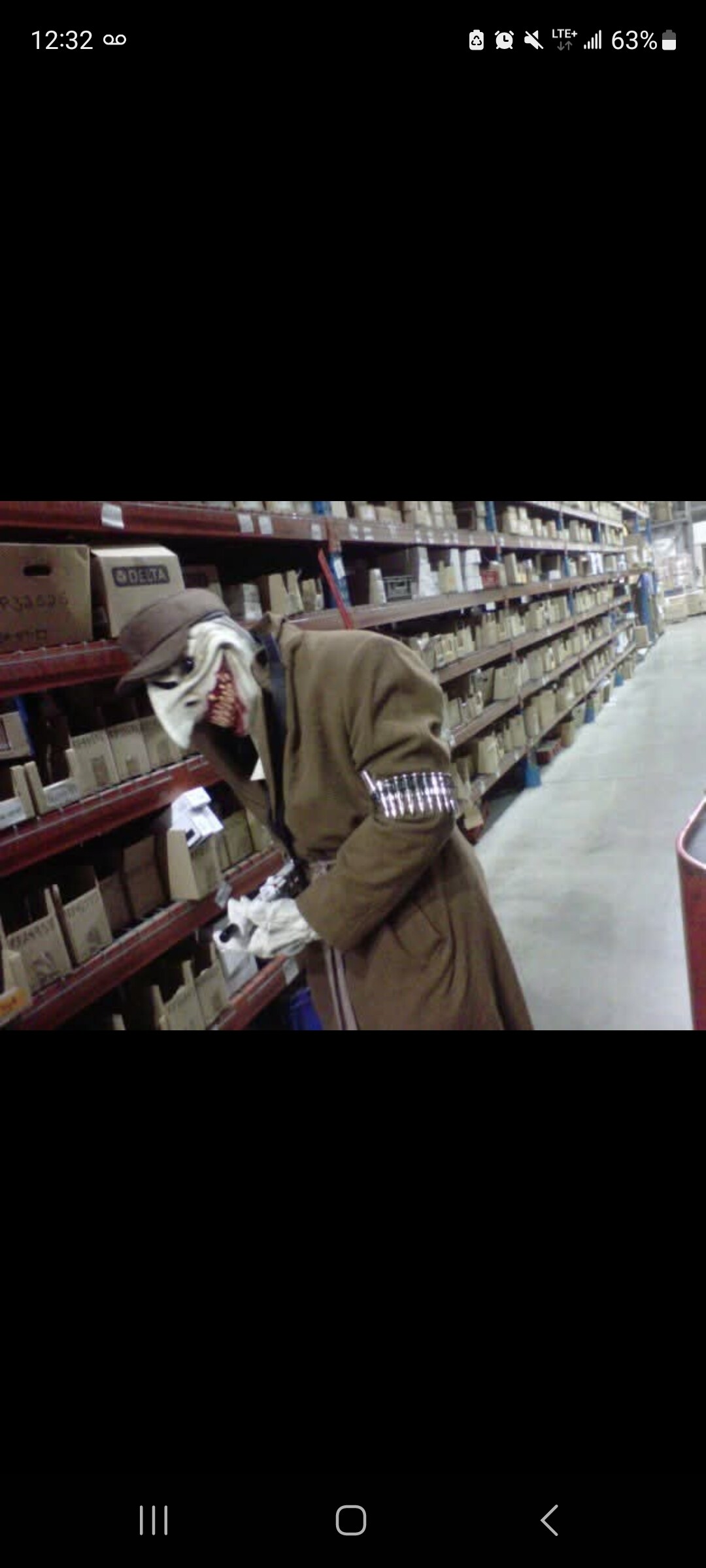 Bah i could only find 2 photos and both dont have the pool cue dammit. Not sure if i even have the trenchcoat still smh. Have to get another one if i dont and reshoot some stuff, probably have to dress up in this anyway this year as im way behind schedule on my rehauls like usual. At least you can kinda see the cool monster hands i found that work great for the costume. Apologies .