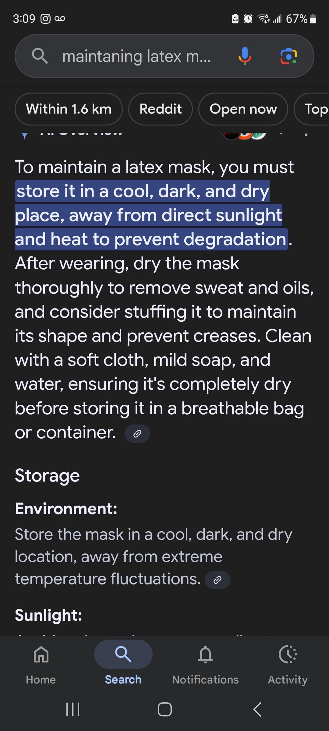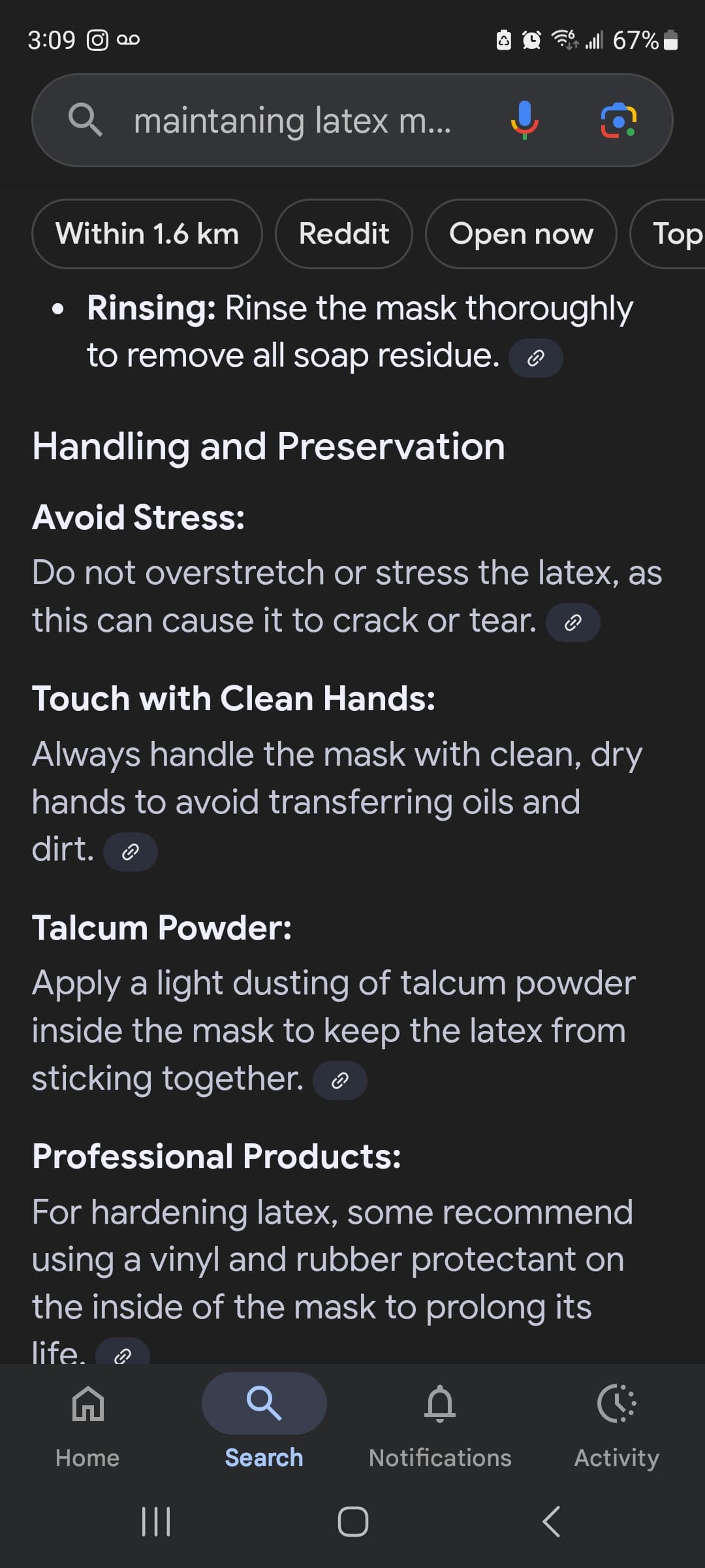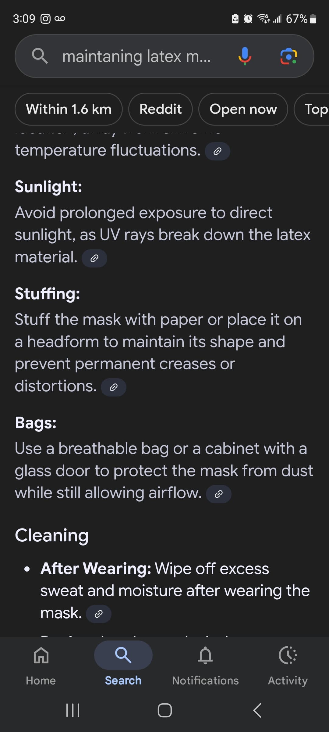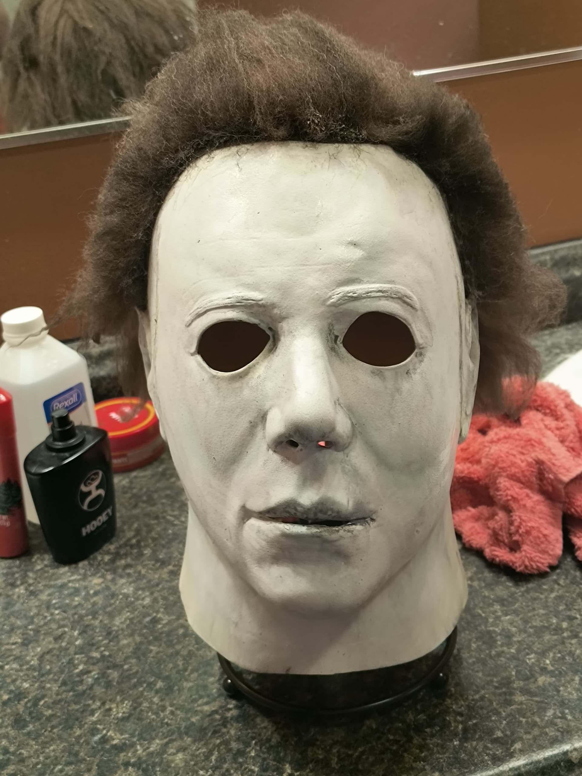 Hey, welcome to the group! First thing, are your masks sealed on the inside, or is it just the brown latex? If not, your first priority is getting some plastidip and sealing the inside to prolong the life of the latex. You’ll need some painters tape as well do not use regular masking tape (you’ll need to cover up holes when you spray plastidip). Do 3 light coats , half hour apart for each coat. I would clean it with isopropy alcohol before plastidipping , but avoid the artist/signatire markings as alcohol will remove it.Heres just a basic guide for maintaning(below), im sure others will have more to add. It’s best to stuff the mask with grocery bags when on display (aparantly styrofoam can damage latex ) to help keep the shape of the well, uh, Shape. Others will post display cases. I’m sure, will help me too because I’ve never purchased any. Feel free to post your masks as well.