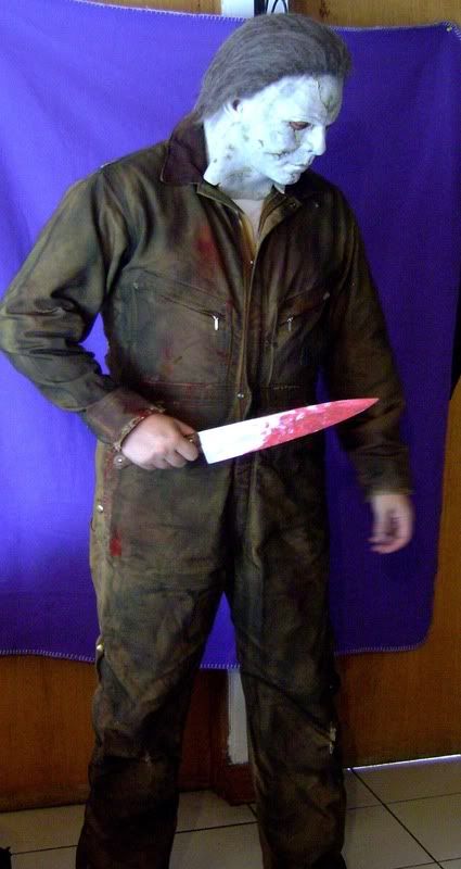 with the exception of the fact that since my mask is not tucked under the neck of the coveralls (with shapes the neck in a more thick and tubelike manner as in the movie) the rest of the pics look dead on.