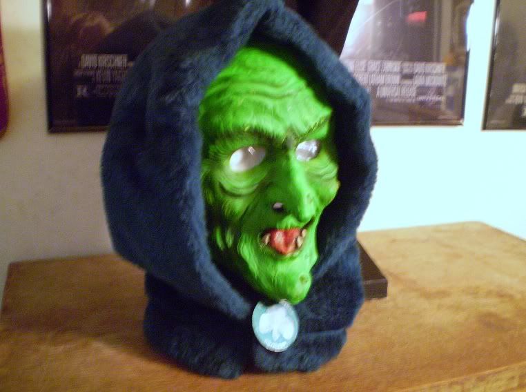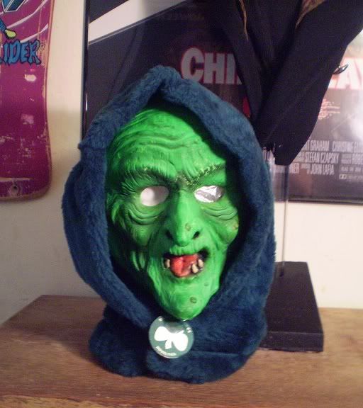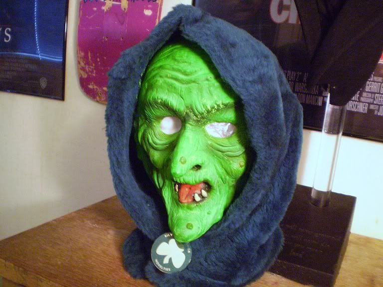 First I’d like to give a huge THANKS to Jon for making this all possible. As some of you may know, I began my search for the original Don Post H3 trio a few years back. I only knew a few sets existed and was going to be hard pressed to find current owners willing to sell their copies off. As luck may have it, I was able to acquire my set relatively quickly at the beginning of this year with Jon’s help of course. So here we are, the latest addition to the trio, a super nice copy of the original DP H3 witch. These masks are beautiful, vintage Halloween goodness is really the only way to describe them. I’d also like to give a special thanks again to E.A. for the Pumpkin and Billy Kirkus for the skull. You guys