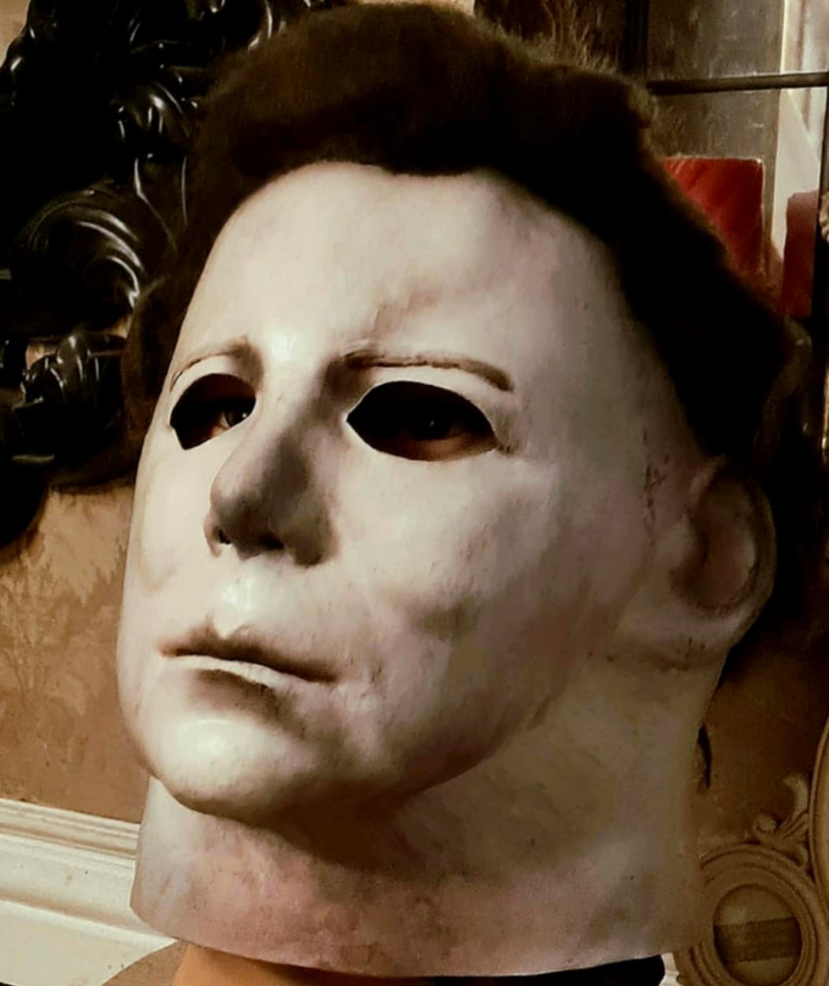Now don’t get me wrong…I am not taking anything away from the proto. I love my copy by Freddy Loper and I know its lineage will literally hold it in the big league. But…it literally looks like a 75 kirk…whereas my nightmare has all the hero nuances of the movie mask. The forehead crease, the slight indent or distortion in the upper left forehead, the more pursed lips and the slightly more exaggerated herpes spot. The ultimate nightmare can do stretch with ease and display to replicate those behind the scenes shots of an unstuffed mask and that’s why it has top spot for me.
